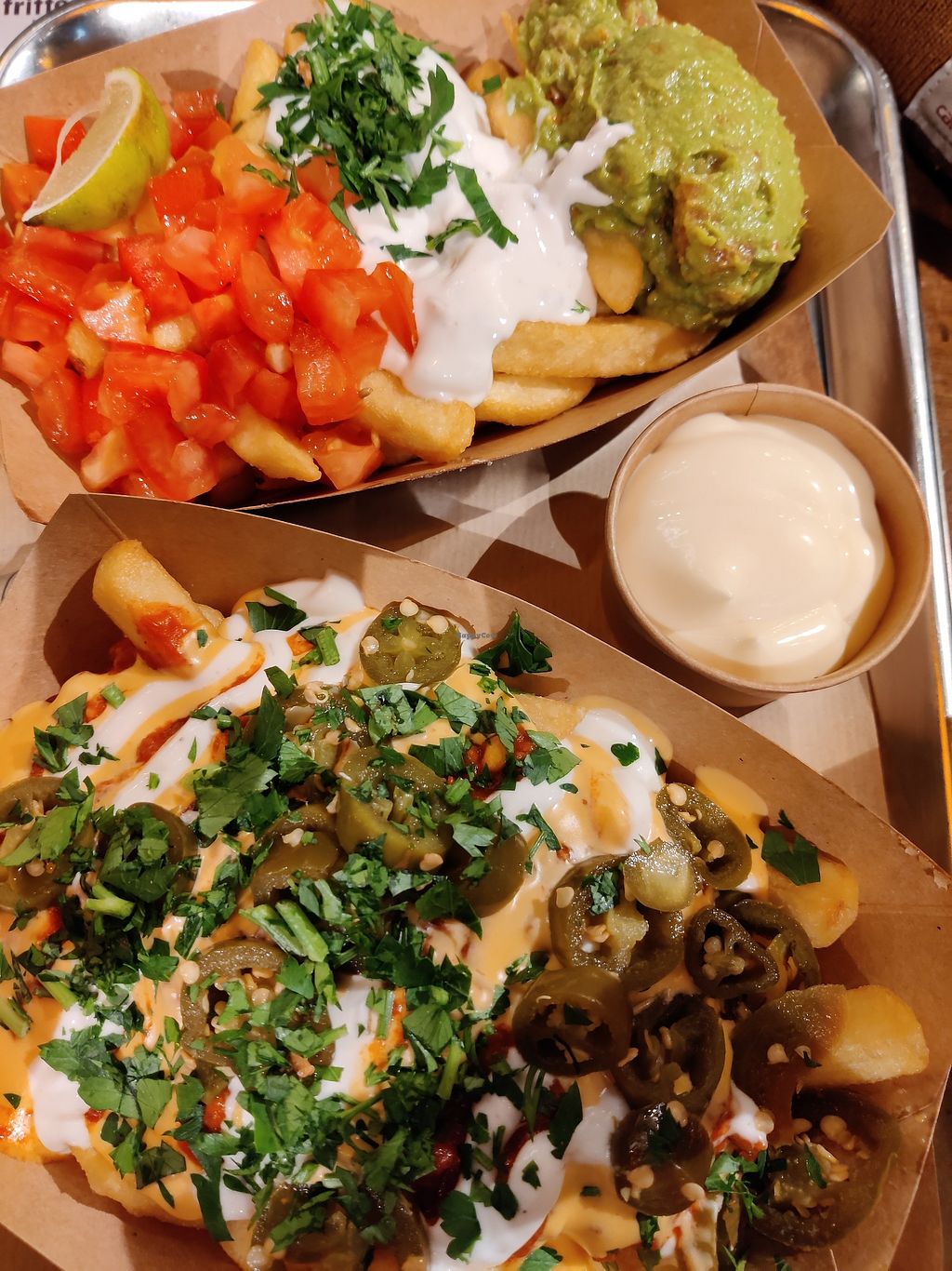 We had the fries smothered in avocado, sour cream etc. there was definitely more sauce than fries but still very tasty. The falafel were tasty too but tiny. Overall it seemed very expensive for what you got.