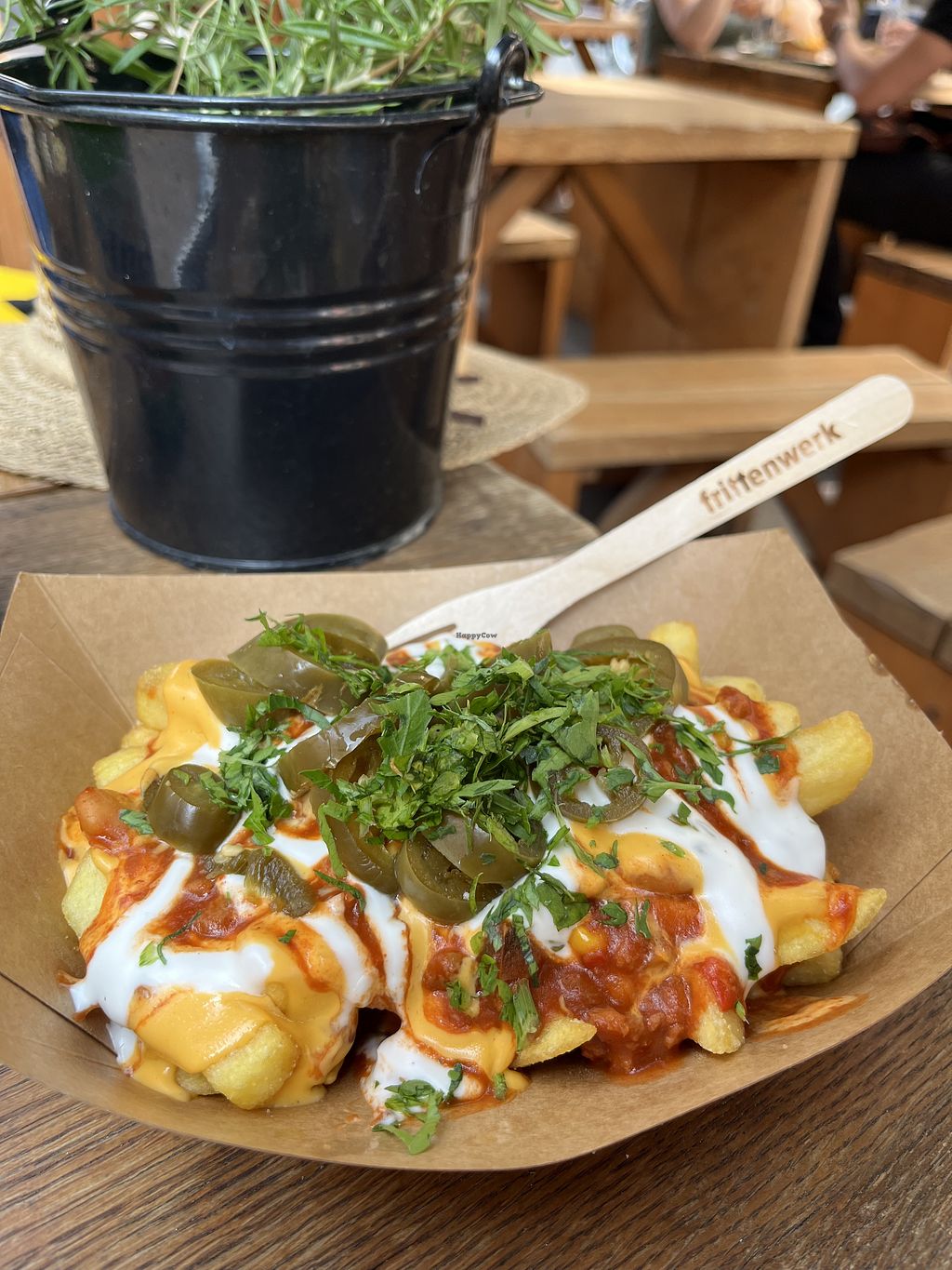This is a nice convenient spot if your in a hurry. Loaded fries with plenty of vegan options. I had the bolognese version & it was super tasty. Also had a great vegan mayo to compliment it all. Would be a regular if I lived in Berlin.