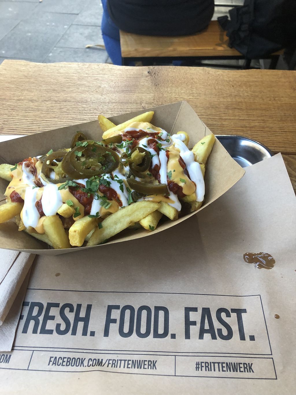 Frittenwerk bietet außergewöhnliche Pommes/Poutine Kreationen an, von denen ein Großteil vegan ist. Zudem gibt es mit den Churros auch einen veganen Nachtisch. Preislich ist es für Pommes vielleicht etwas höher, dafür bekommt man aber auch eine große Portion. Die Zubereitung ging sehr schnell und trotz langer Schlange, muss man nicht lange warten.
