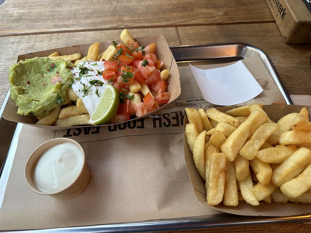 You can choose between different vegan fries and a bowl. The portion is huge! I Van recommended the vegan mayo, it‘s fantastic. You order at the bar. Clearly marked vegan options. I would love to see more.