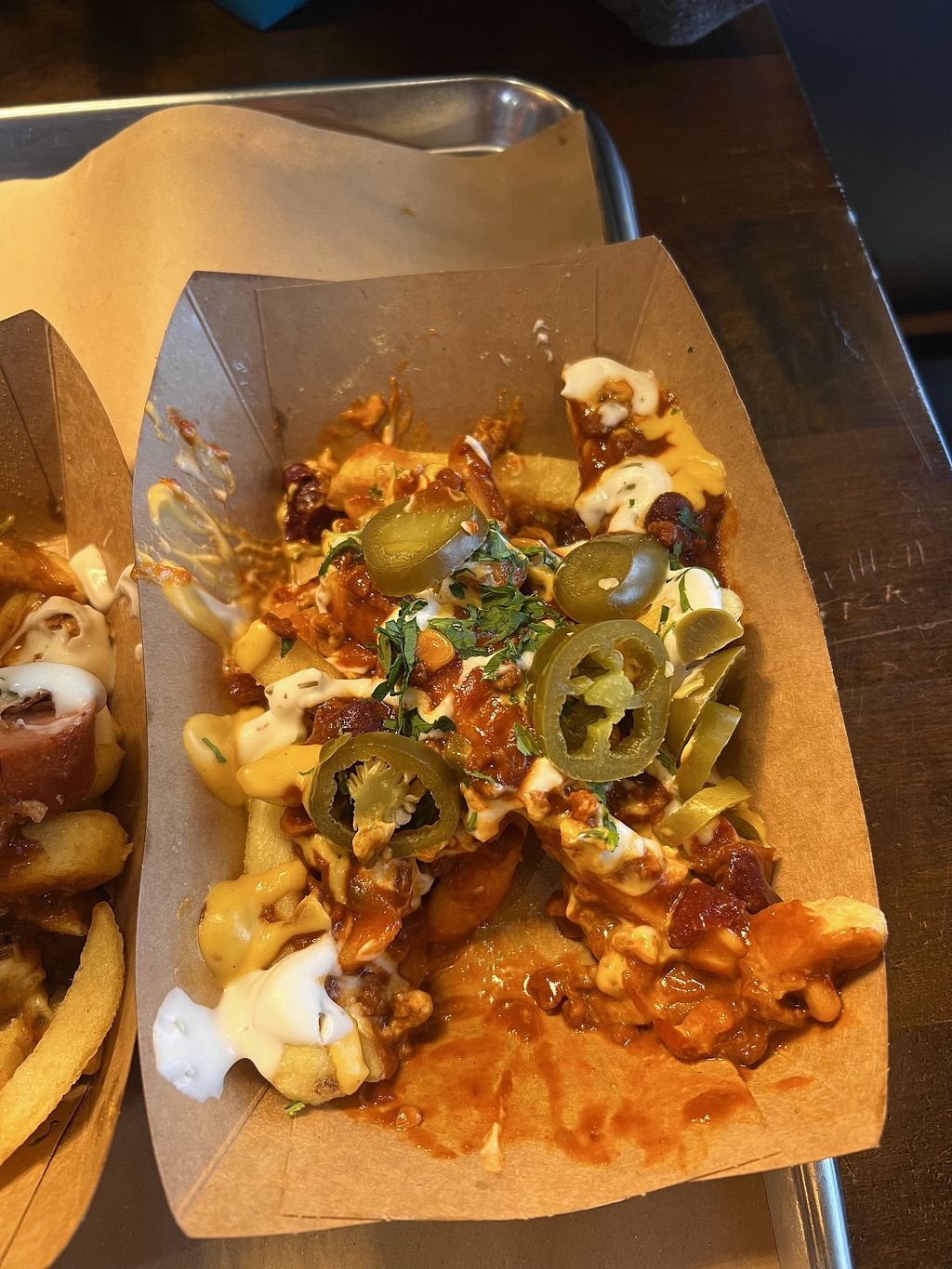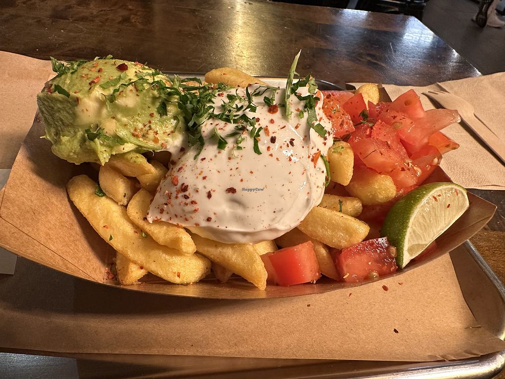 They have one vegan loaded fries on the menu. But it’s delicious and savory.