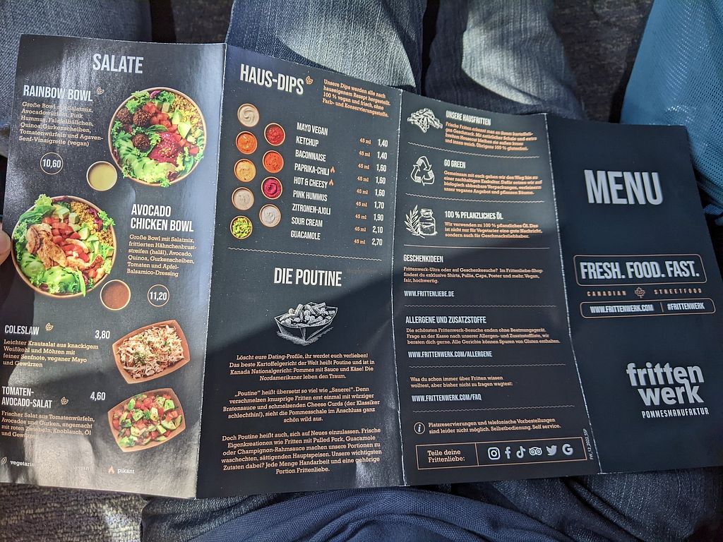 I was impressed with the range of vegan options at Frittenwerk. Even their coleslaw is vegan with vegan mayo and they have several poutines and one tater tots dish as well as plant balls. I chose the chili cheese fries and I really liked the fact that they were standard vegan, they did not come as a "vegan option". I personally found the amount of sauces a bit overwhelming, there was so much sauce that you almost couldn't taste the fries. And I discovered that after so many years of being vegan I somehow don't enjoy foods like this as much as I used to, but that is purely subjective. Fact is that the portion sizes are big and the ingredients seem fresh, the quality of the food is very good. The coleslaw was tasty too. Definitely a valid option at the train station if you feel like your body can handle a ton of fatty food :)