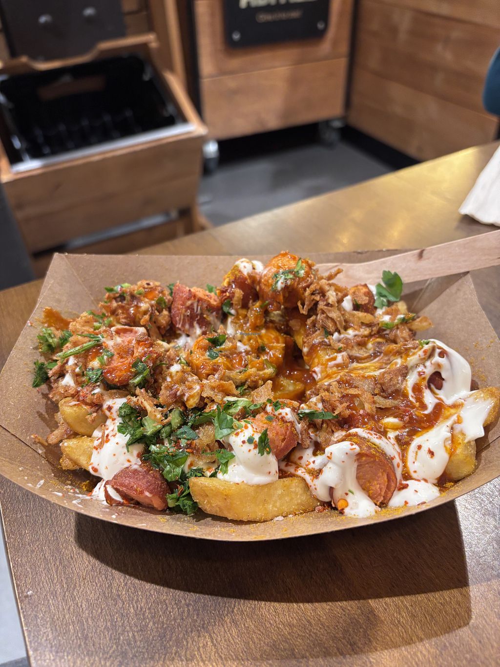 It’s the kind of dirty food I like, fries with loads of sauces and topping, was tasty but very rich. It’s in a station and feels like it.