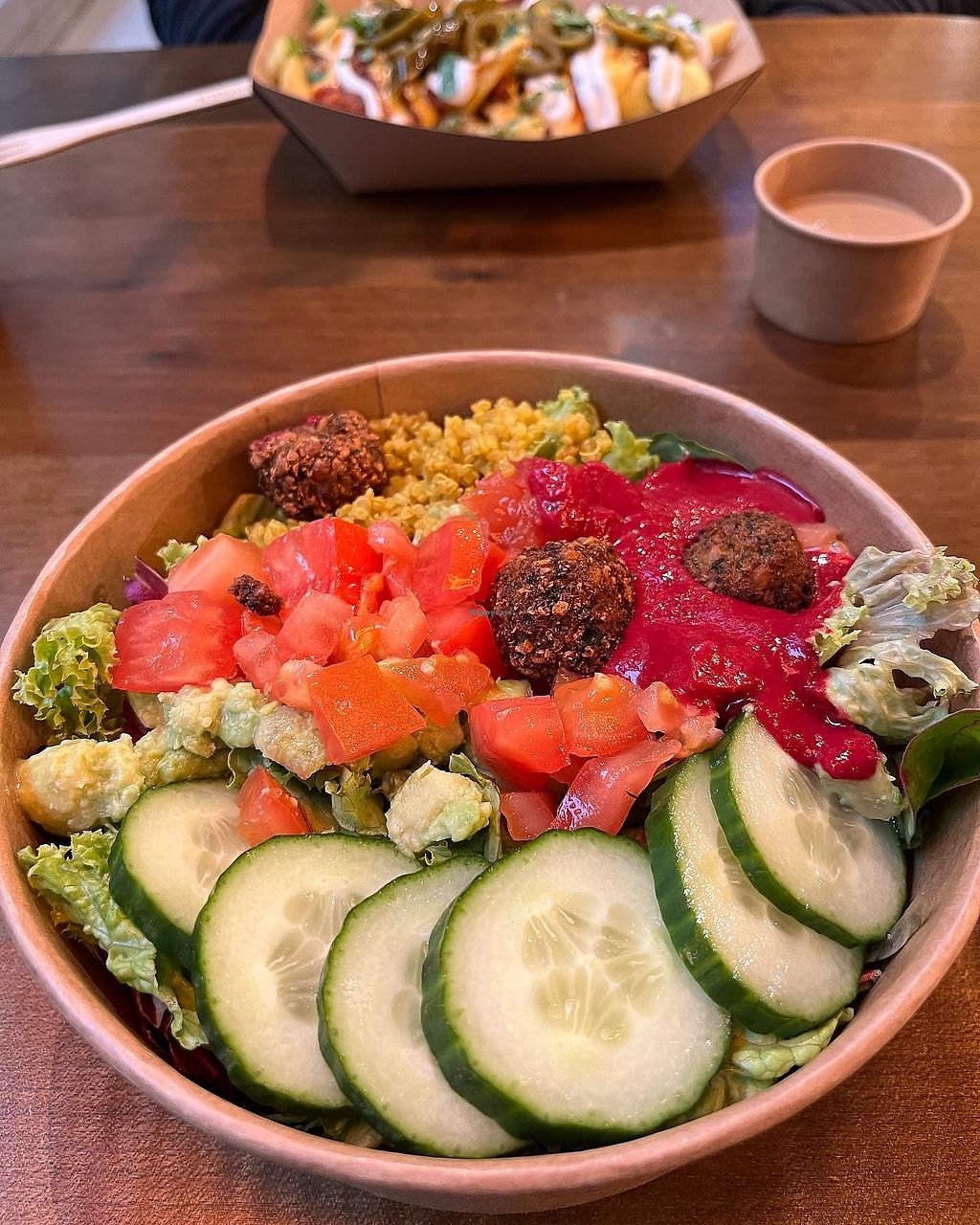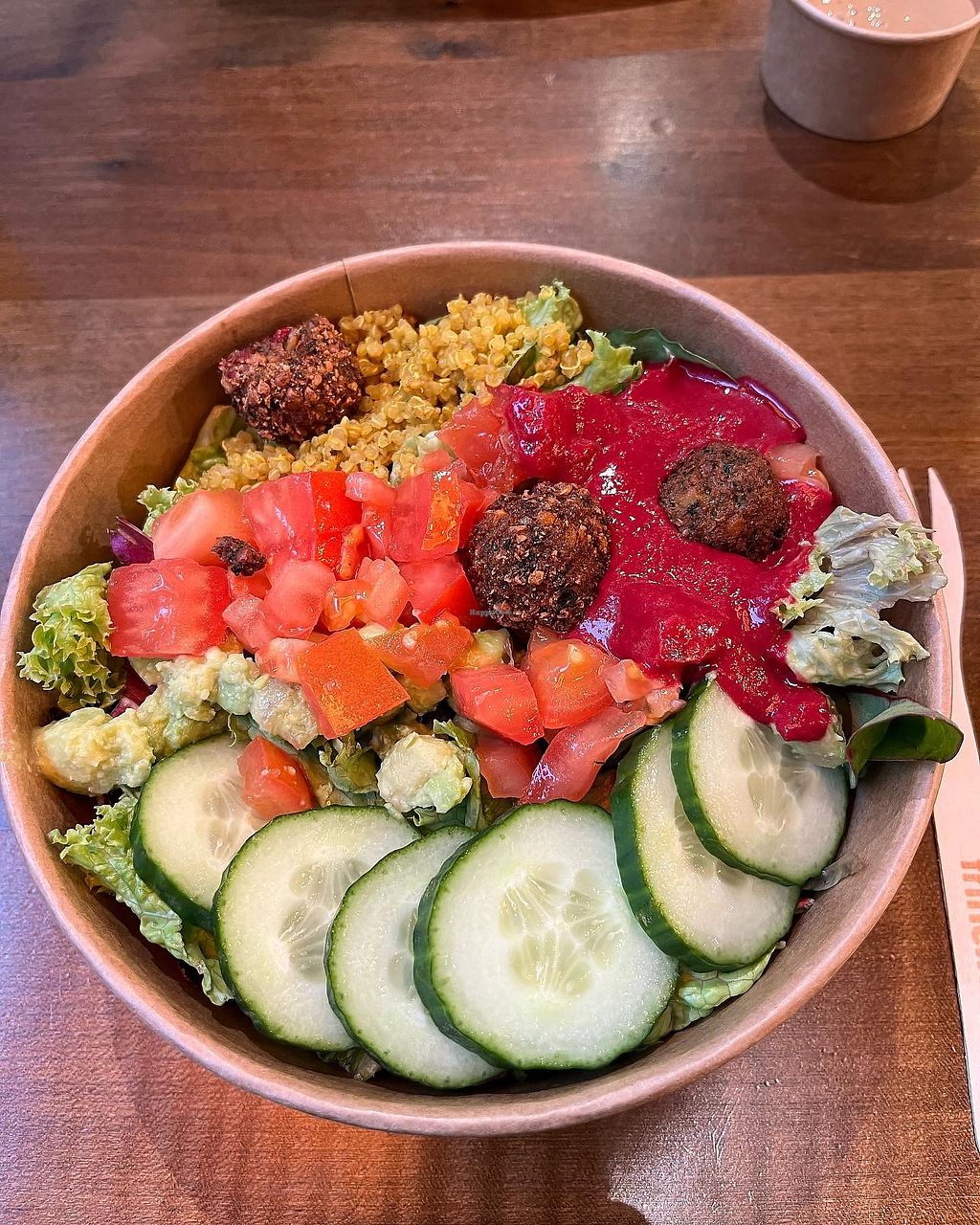 Option 2 - Rainbow bowl: big bowl with mixed salad and spinach leaves,…