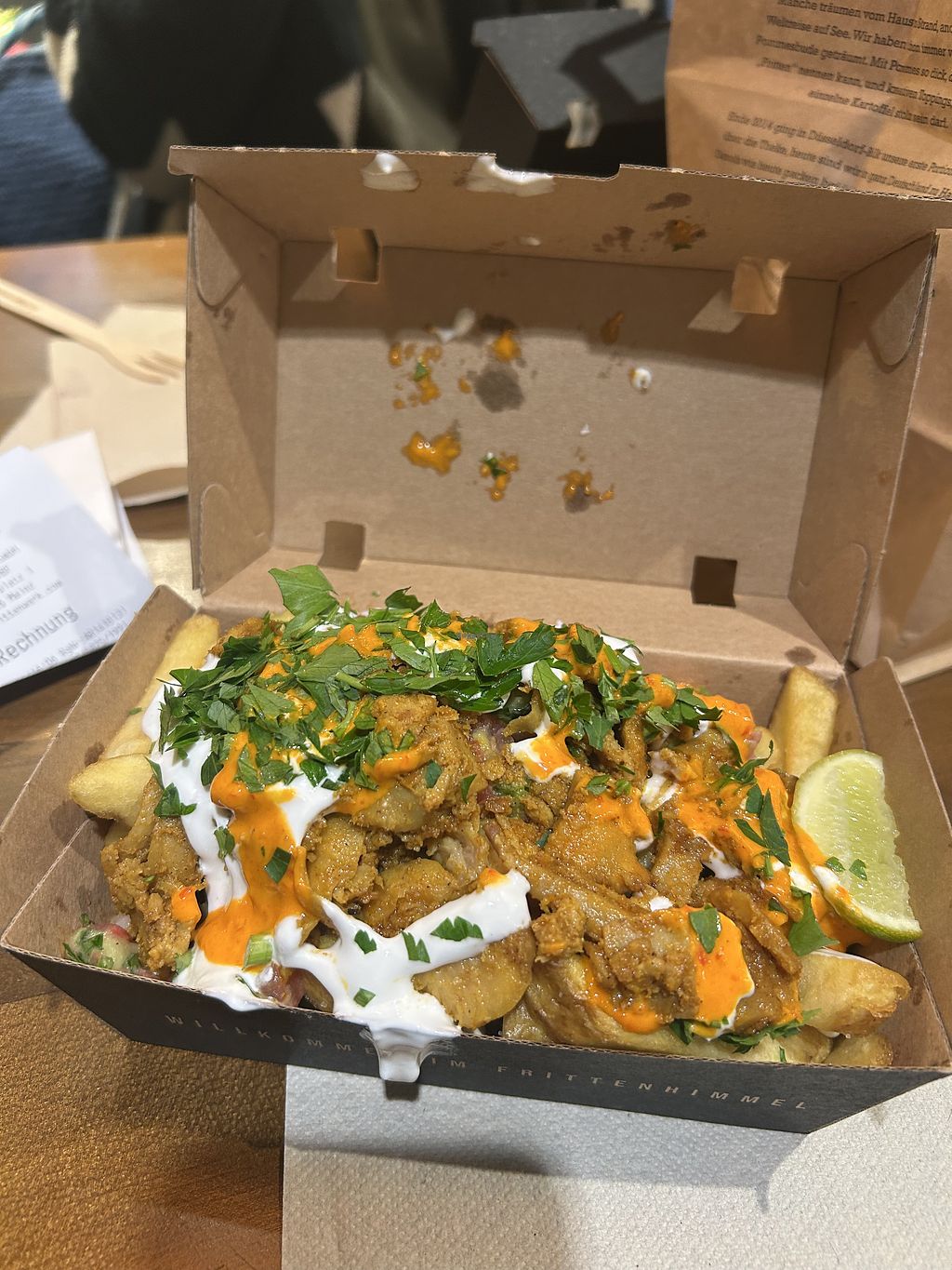 That have nice options for vegan poutine/ loaded fries. The store is a bit crowded and write busy but a welcome addition to Mainz central station's culinary scene