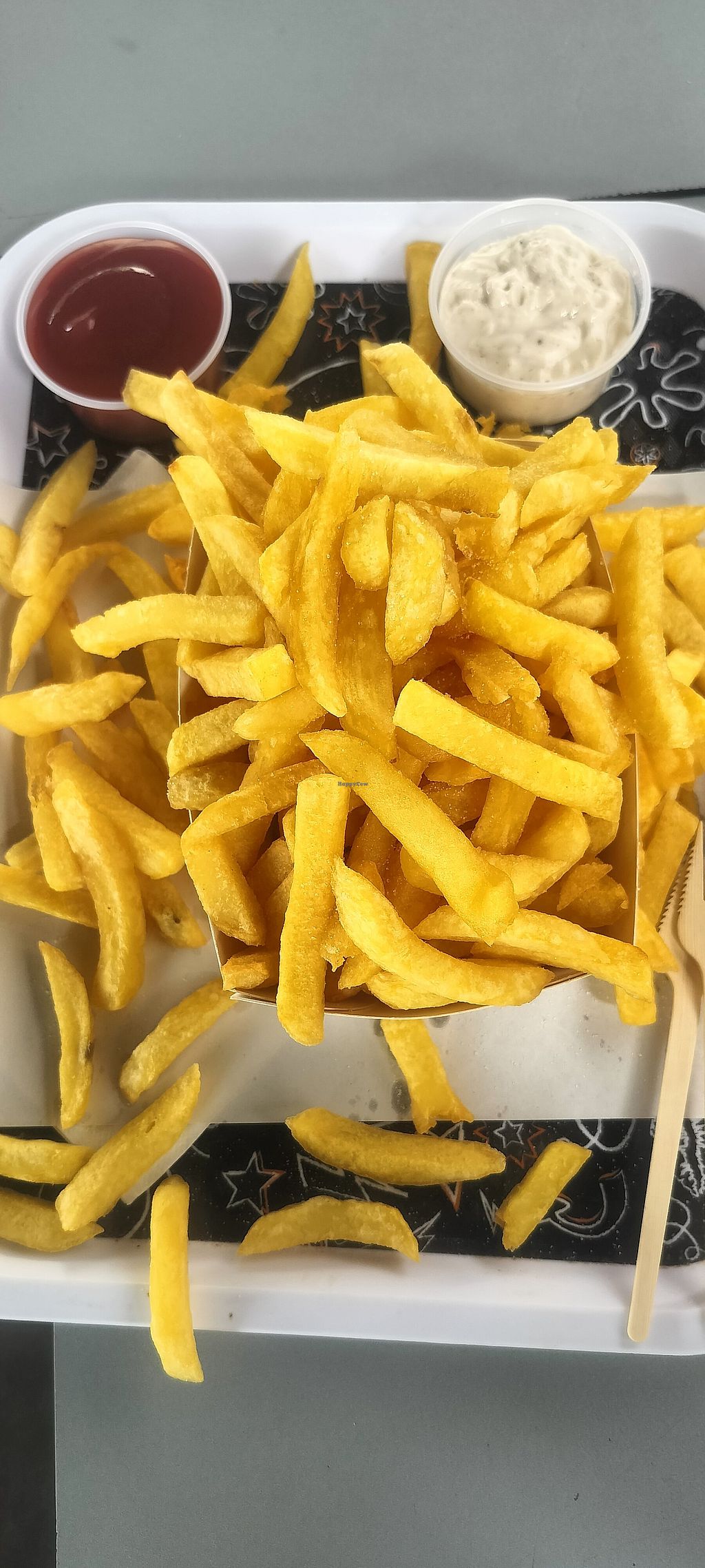 Friet was lekker en je krijgt enorm veel. Ook heel veel mayo. Misschien wel iets teveel, het is eerder mayo met friet. Qua portie grootte is de kleinste is ruim genoeg voor mij.