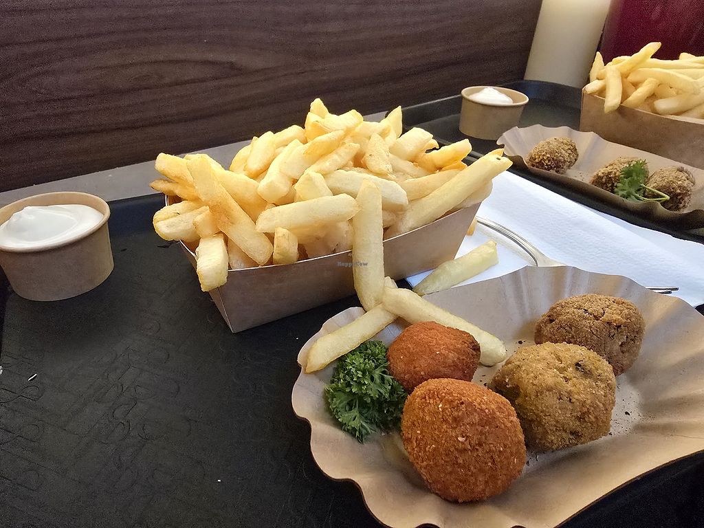 Vegan krokets, vegetarian frikandel, fries with vegan mayonnaise