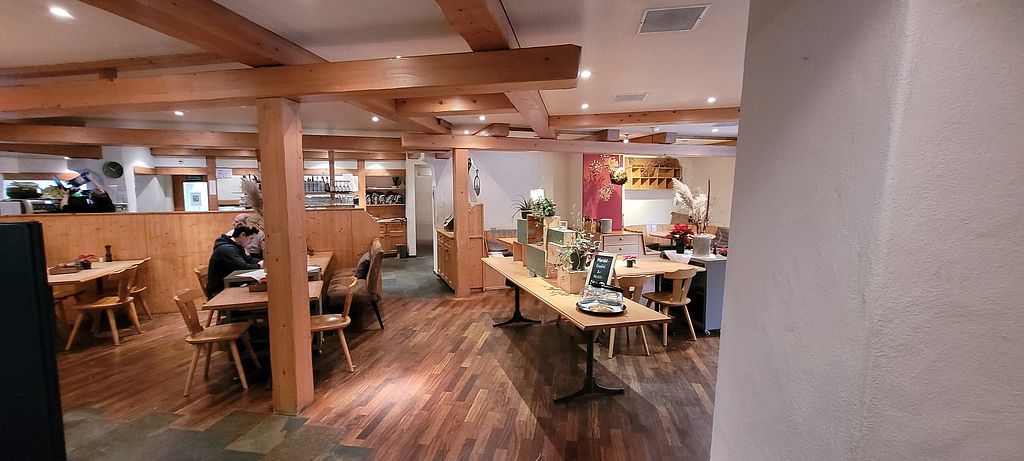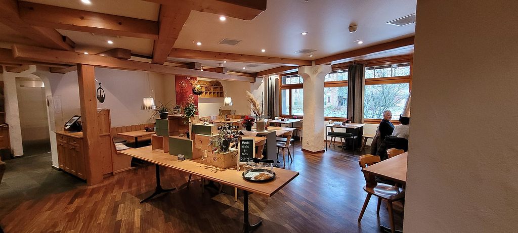 Serves meat, vegan options available. Traditional swiss restaurant with vegan choices. Menu includes vegan curry, pasta and dal. Open Mon 8:00am-11:30pm, Tue-Fri 6:00am-11:30pm, Sat 8:00am-11:30pm, Sun 8:00am-5:00pm.
