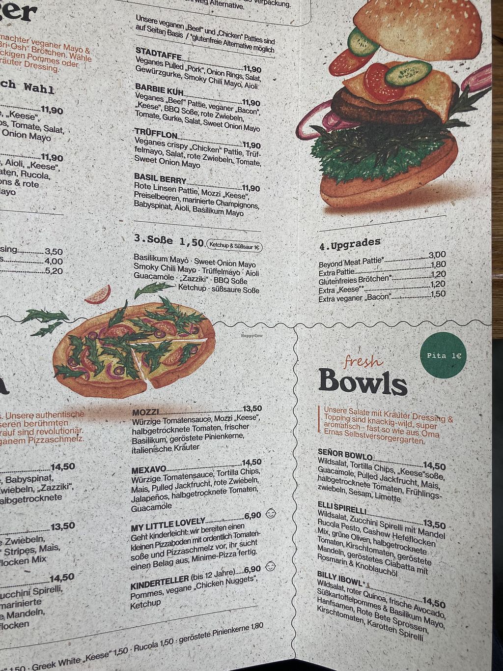 Pizza New Amsterdam (mit veganer Hollandaise) und Burger Barbie Kuh (m…