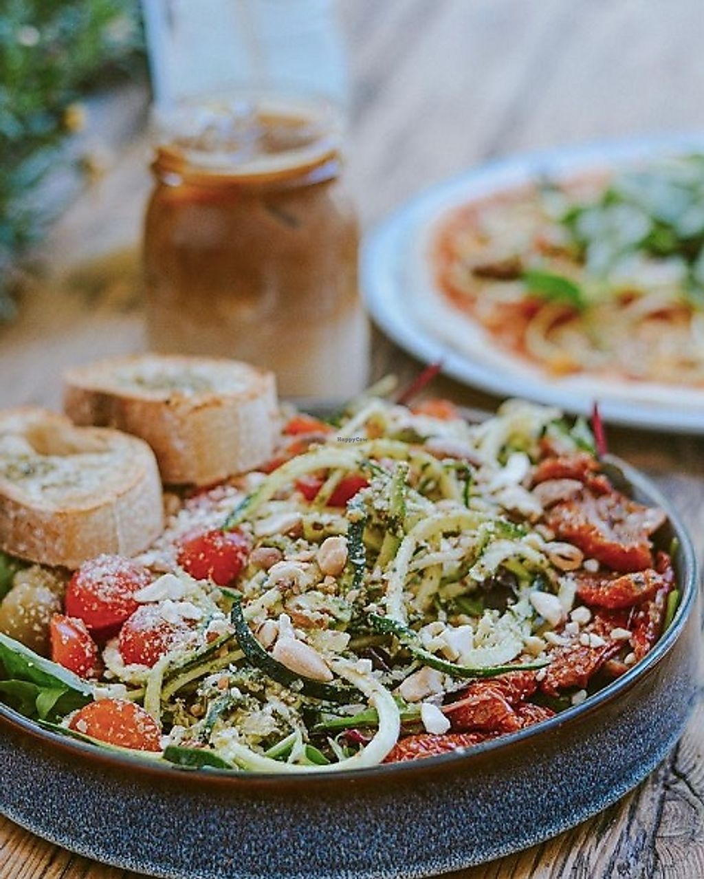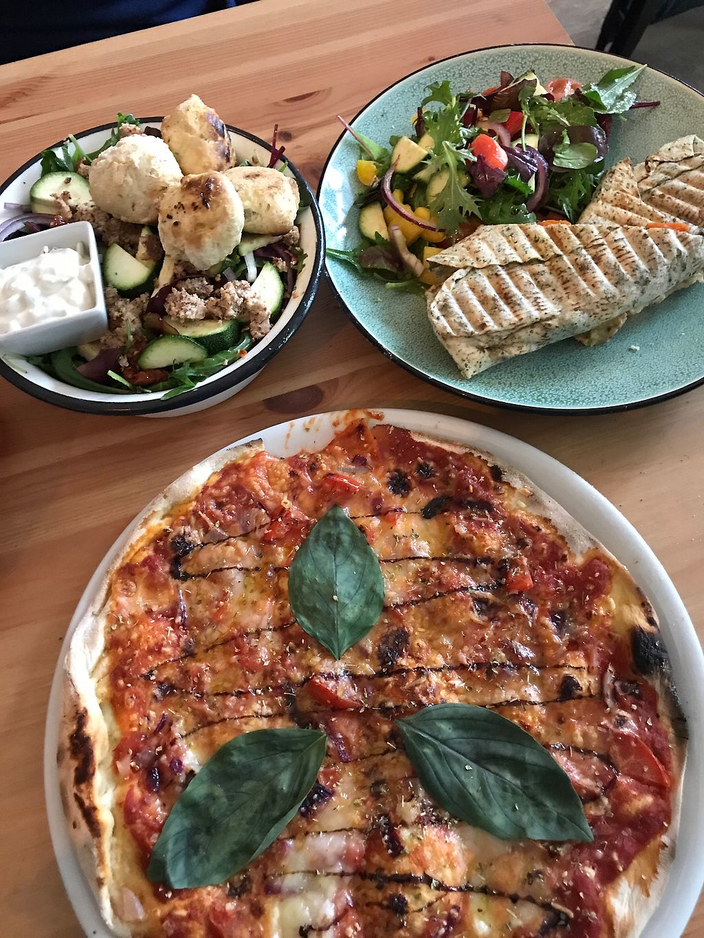 Exciting food in a comfortable atmosphere. Decent size portions. Good cheese options for their pizza. A good selection of pretty cakes.
