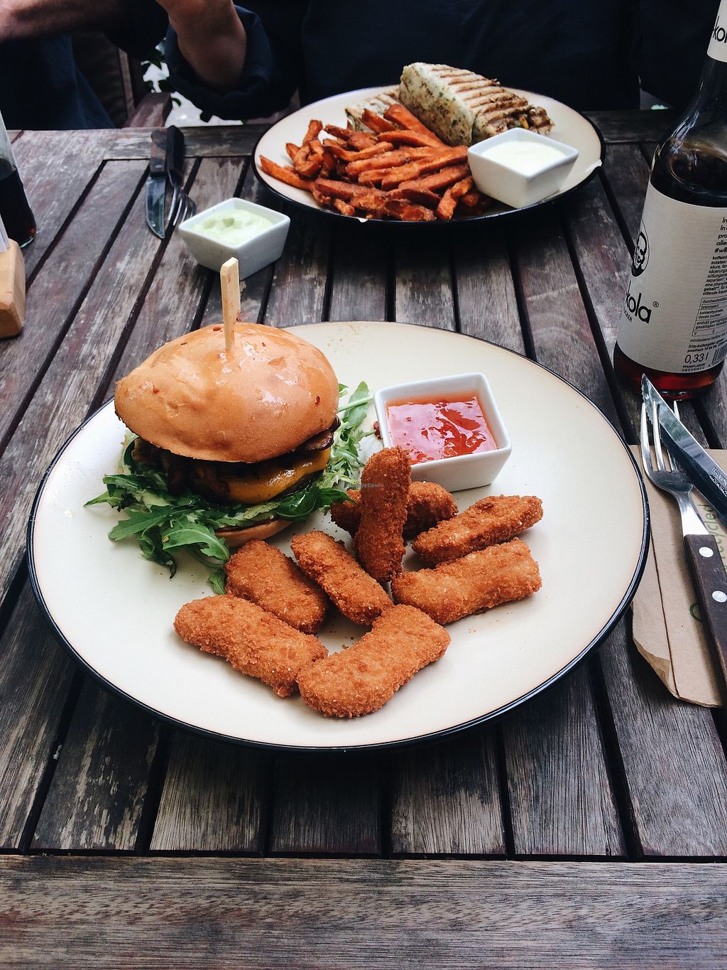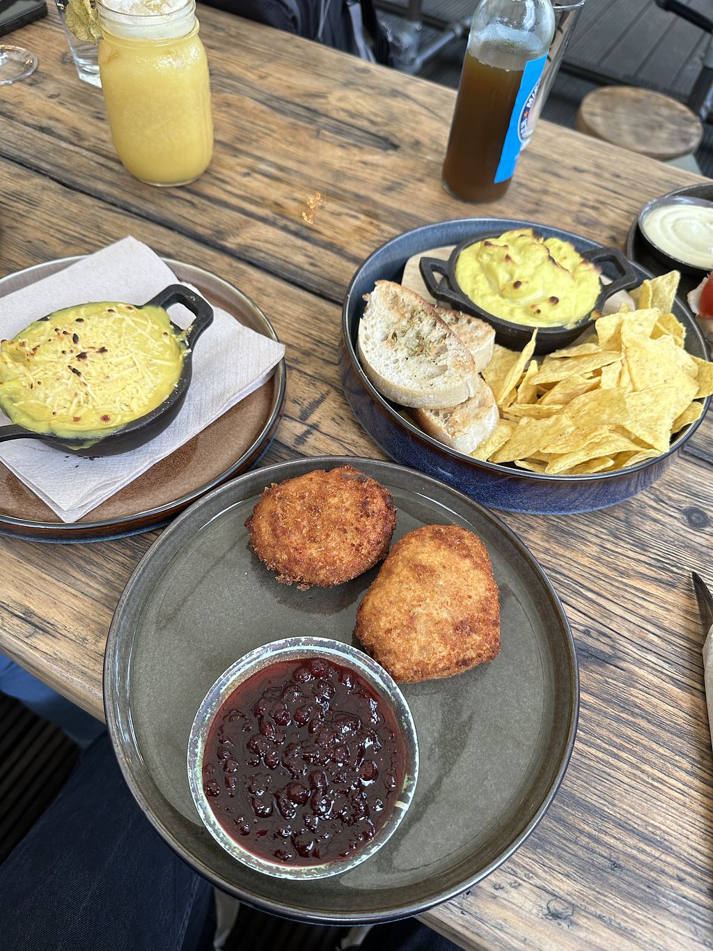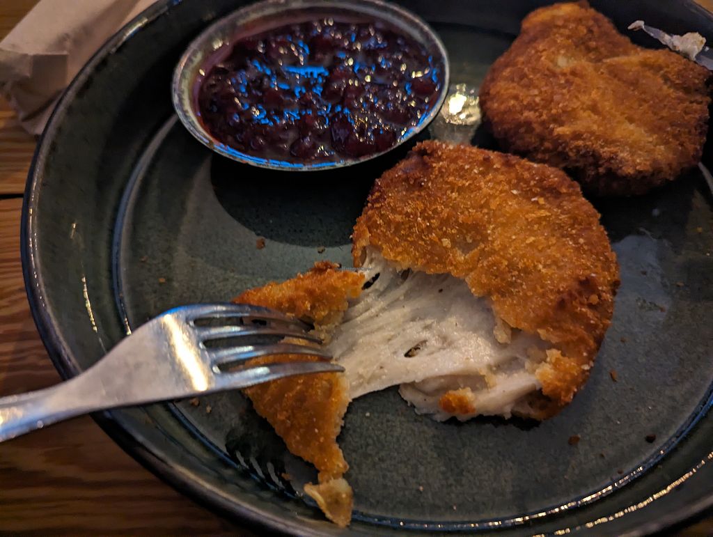 Very good food, some interesting and creative dishes. I had the baked 'camembert'. While it didn't taste super cheesy, it was yummy and the consistency was really good; the breading was crisp and yummy. Friends had a pizza and the burrito and were also happy.