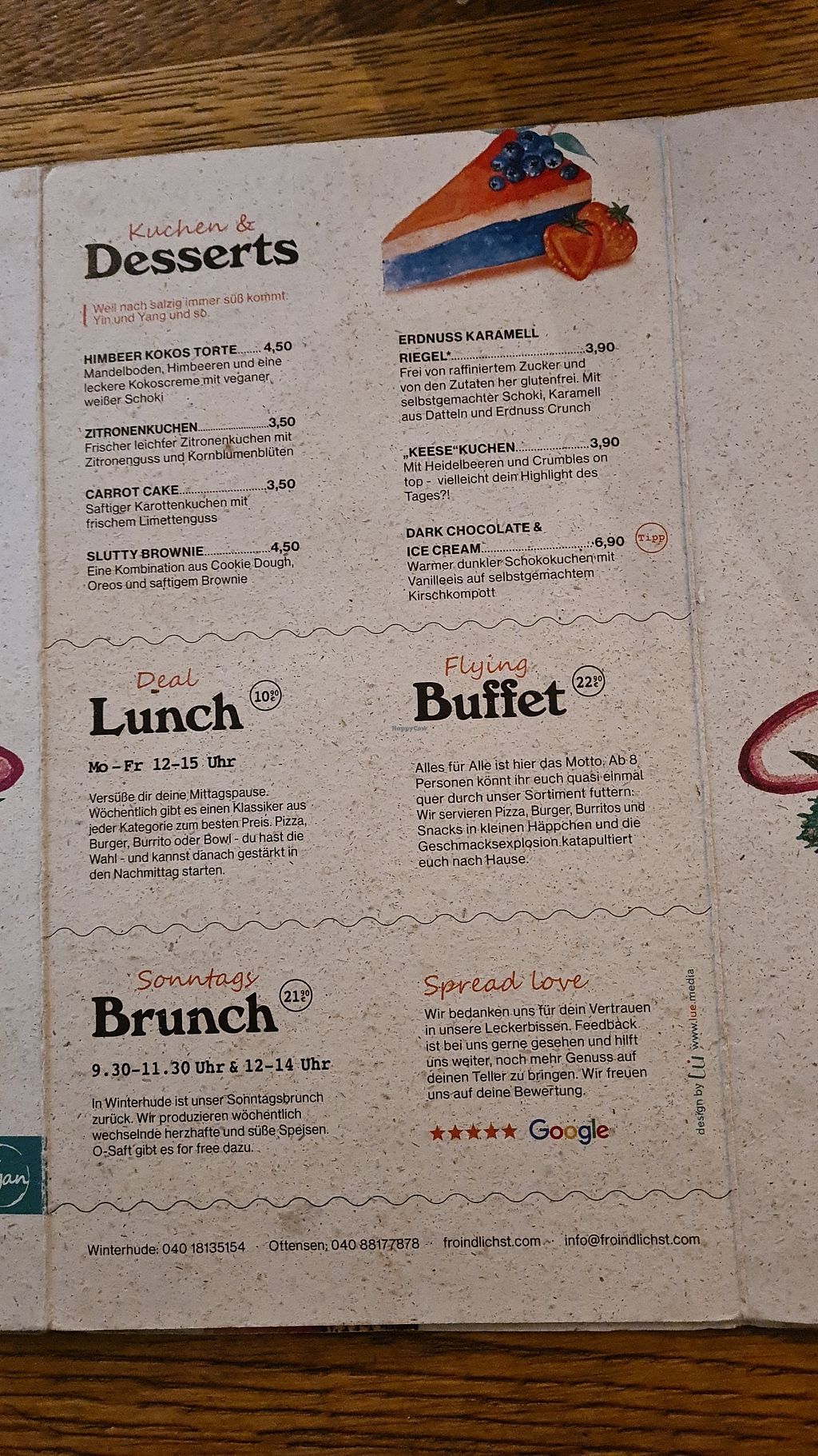 Wir waren gemütliche 2 Stunden vor Ort und freuen uns bereits auf das nächste Mal FROINDLICHST- super frische, leckere Speisen und klasse Preis-Leistung.