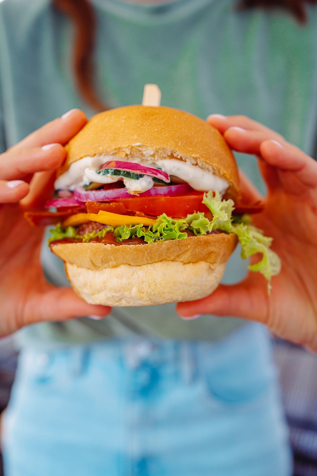 Hauprspeise: Salate mit knackigen Salat, Pulled Pork mit eingelegten Z…