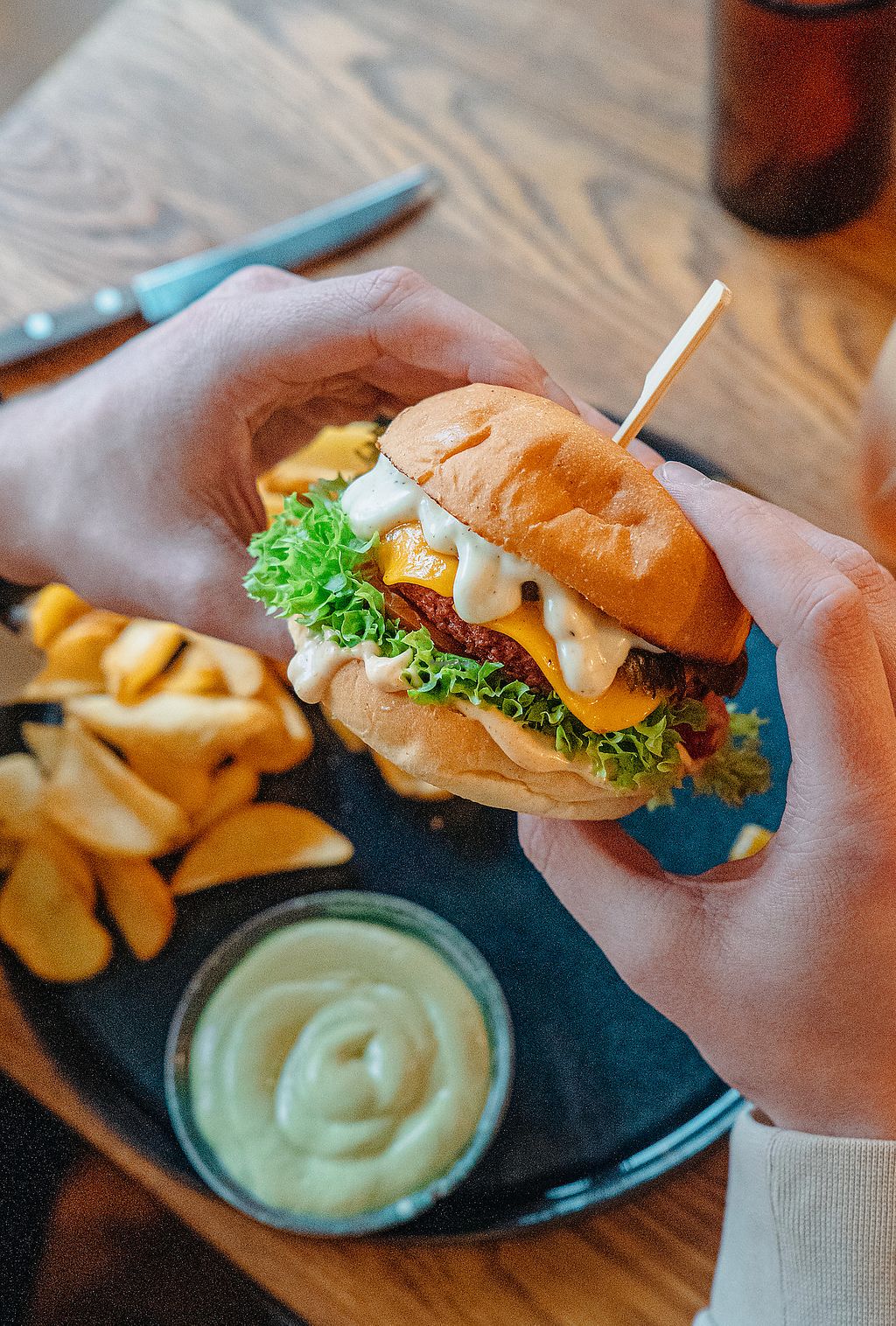 Vitaly Burger mit Pommes, Ketchup und Trüffel-Mayo