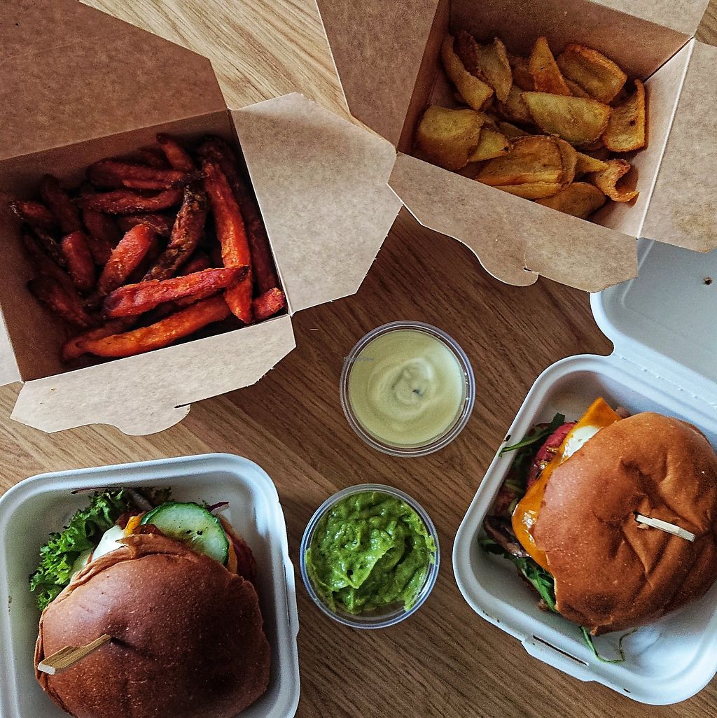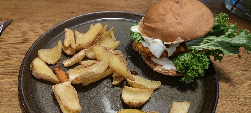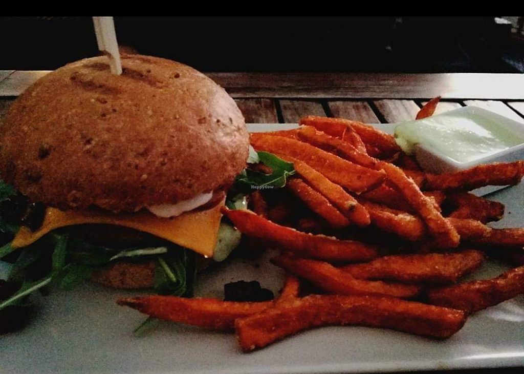 I tried the "chicken" burger with fries and it was delicious, tasted some of the cheesecake as well and it was super good as well. They also make cocktails which are great and not super sweet.