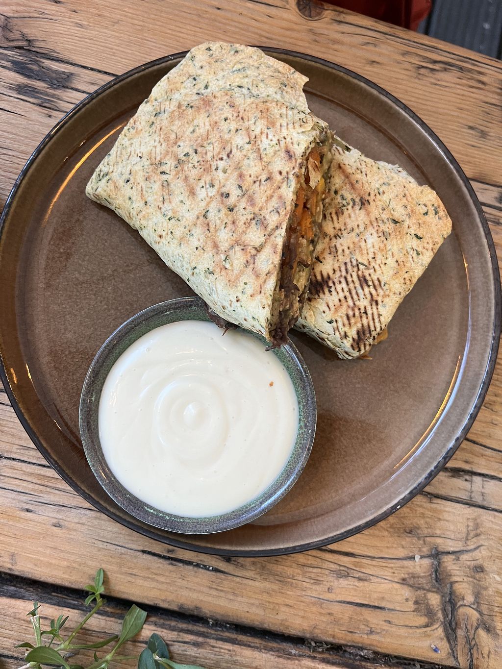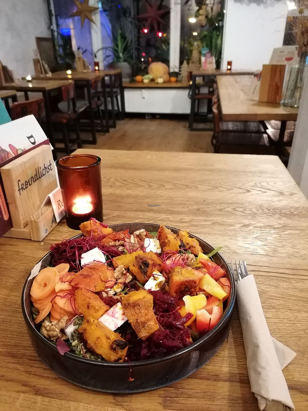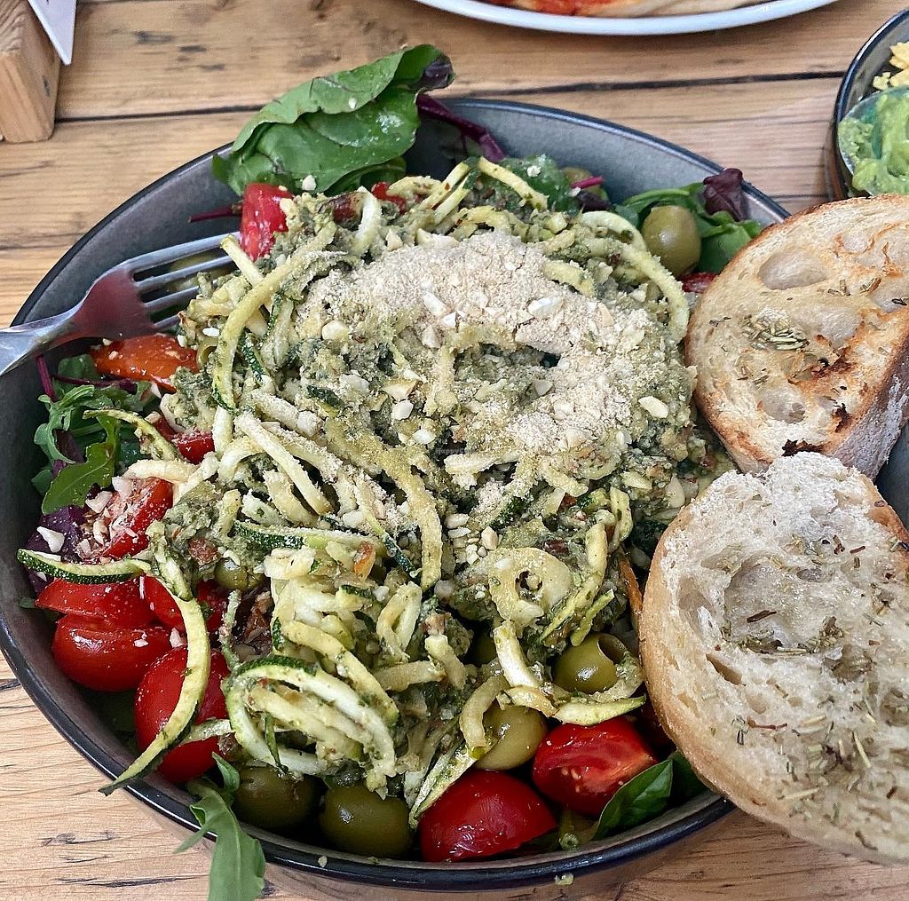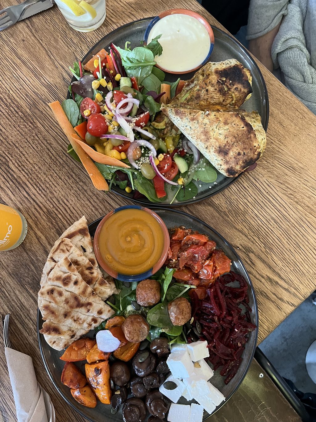 I had a bowl with pumpkin, beet root, seeds and and and. Everything was very tasty and especially the pesto was from another world!