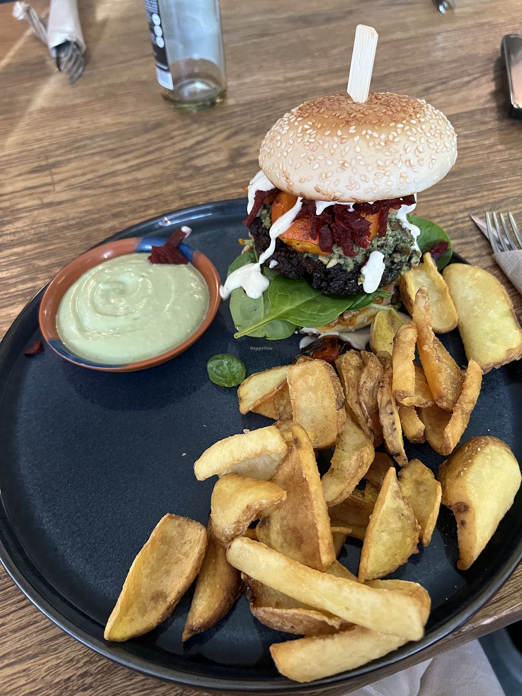 Sehr cooles Restaurant, fancy Drinks, nettes Personal, auch für gut empfunden von nicht Veganer*innen. Die Nachos sind sehr lecker, die greeky leaks eher nicht zu empfehlen, da der Keese sehr speziell schmeckt.