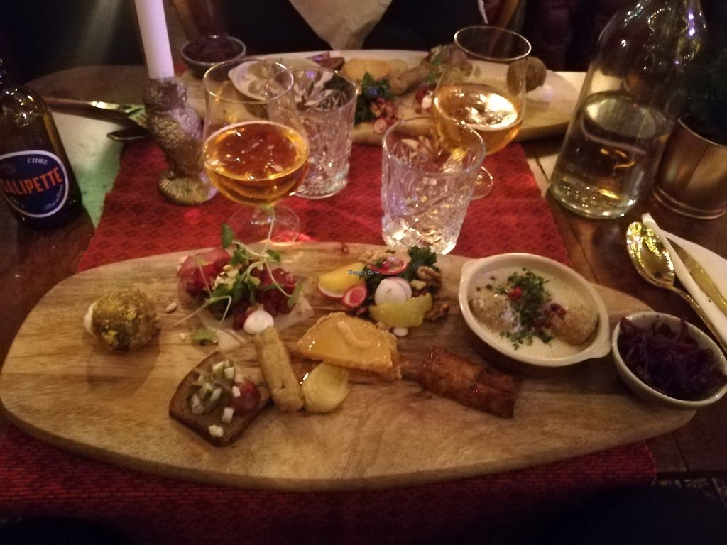 Really creative and yummy vegan food. We had the tasting menu, which was good value for the quality of the food. Everything was really nicely presented, but the Norichips with false lobster salad and the cruelty free foie gras (made with cashews) stood out - perfect texture, taste, and presentation. Dining here was a pleasure. Perhaps good to book ahead on the weekends, so you don't end up on one of the couch tables/chairs, which looked more suitable for lounging with a drink than eating dinner from. Highly recommended.