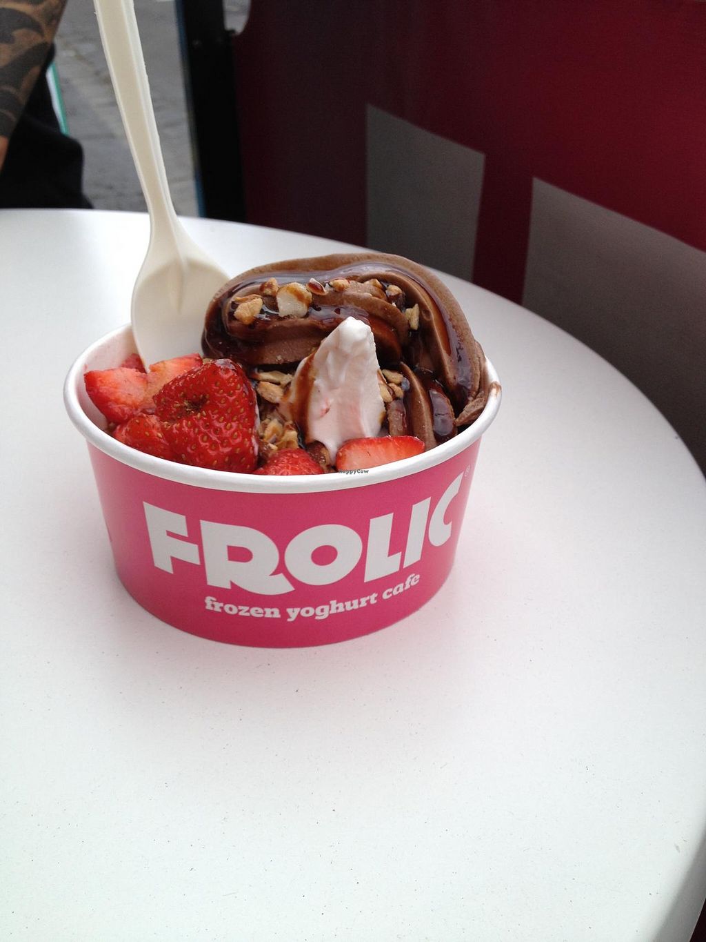 Frozen yoghurt shop offering monthly changing flavors. Has non-dairy varieties. Waffles are vegan as are a number of the toppings, dark chocolate sauce, bread and butter pudding. AUG 2015 REPORTED SHUT.
