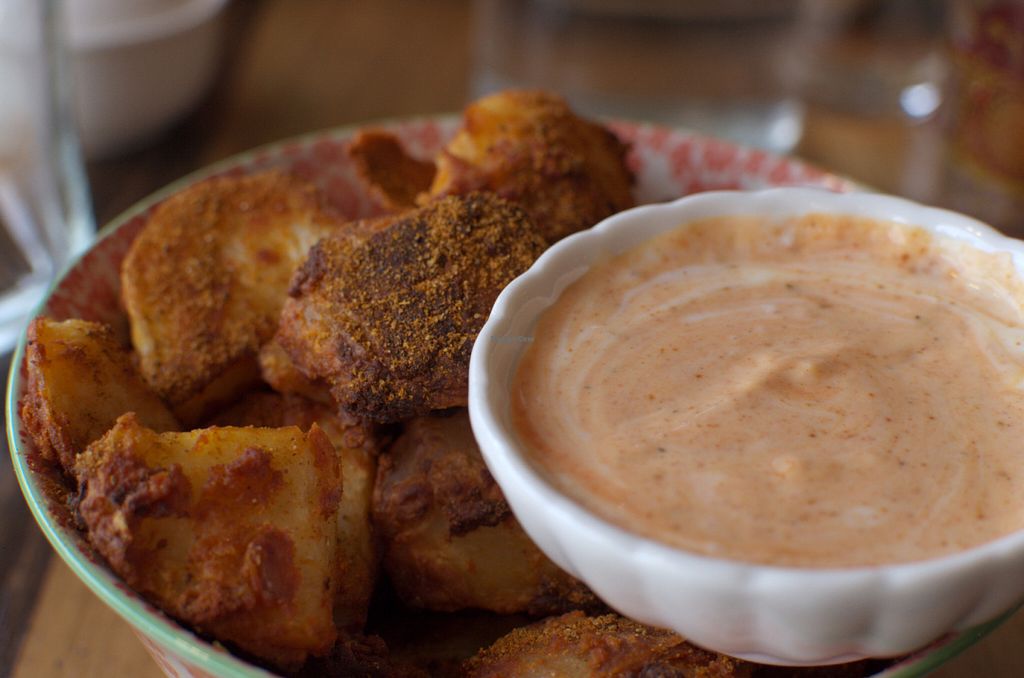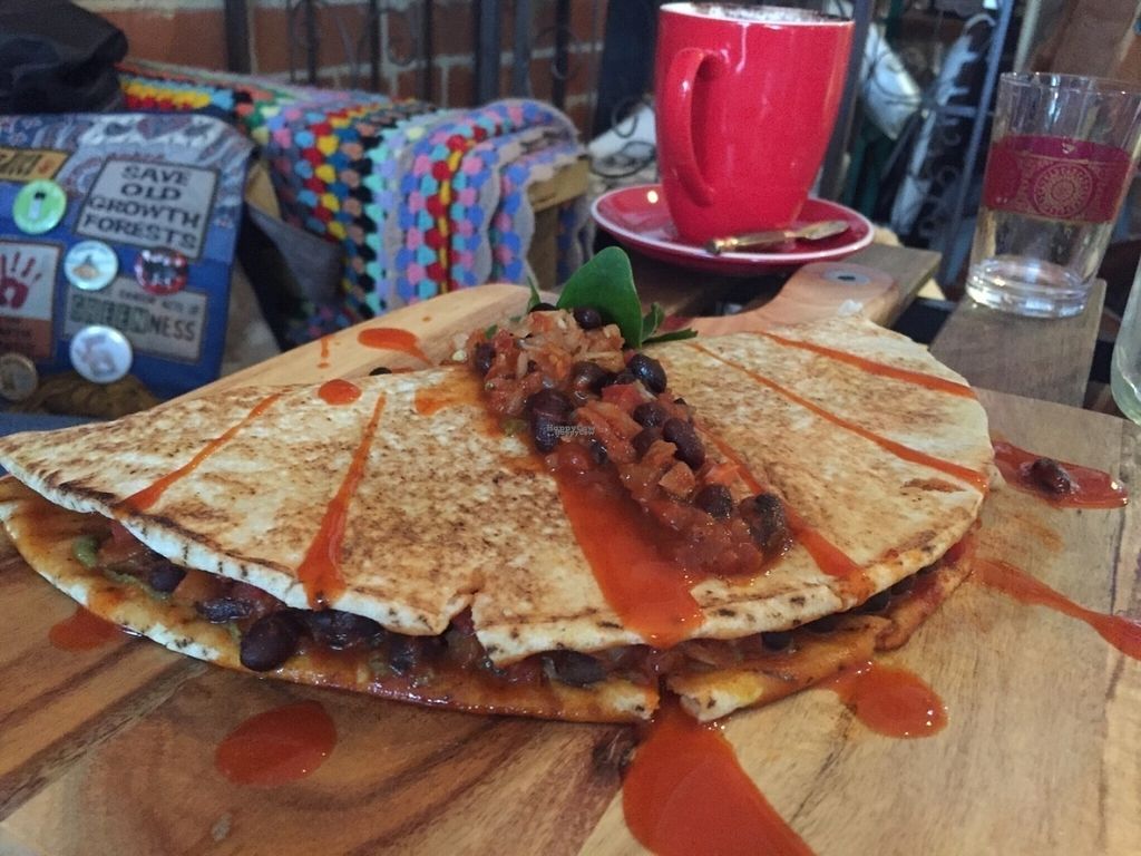 This place is divine. They use delicious fair trade coffee, half pint vegan dairy ice cream and yummy Damona Almond feta. We tried the mock duck and almond feta salad and the quesadilla which we both devoured. Go try it you won't be disappointed.