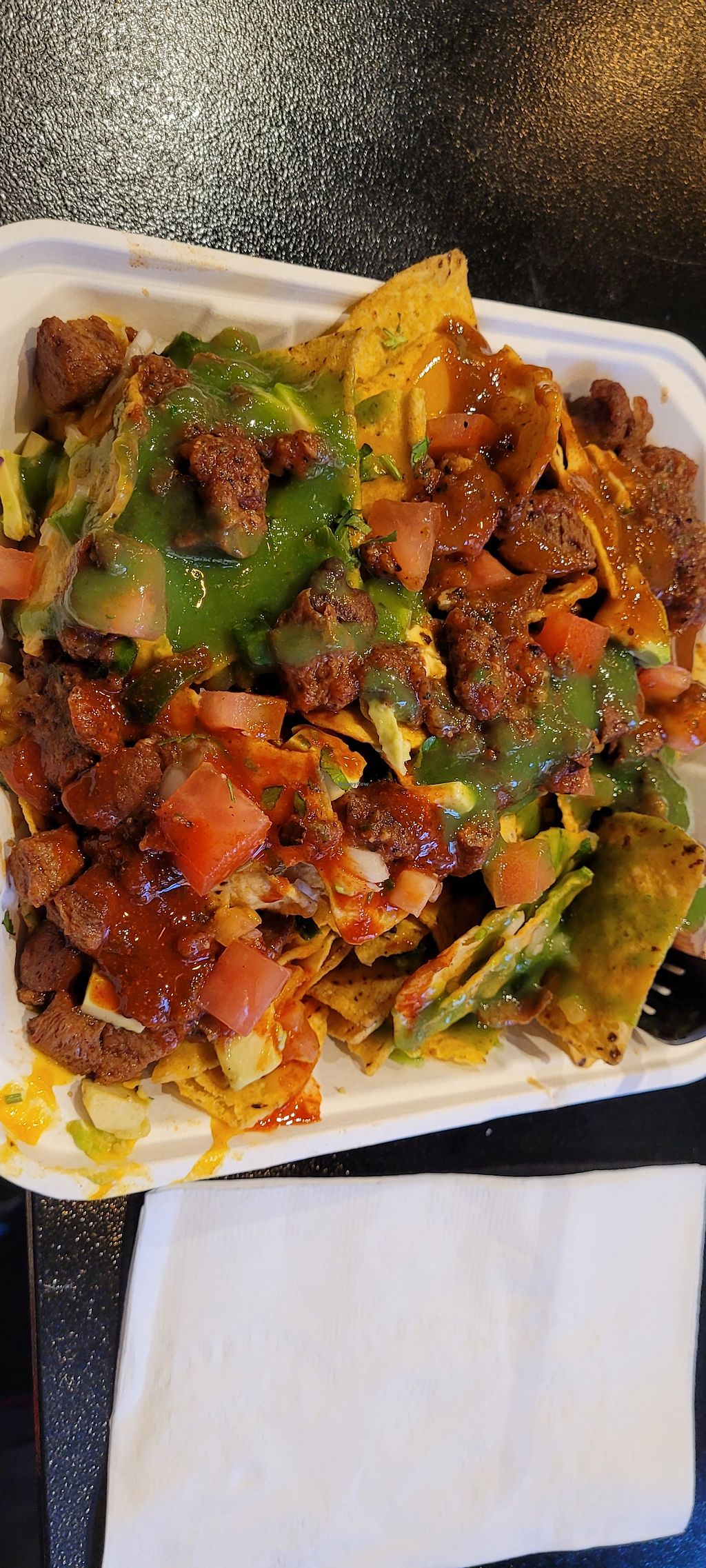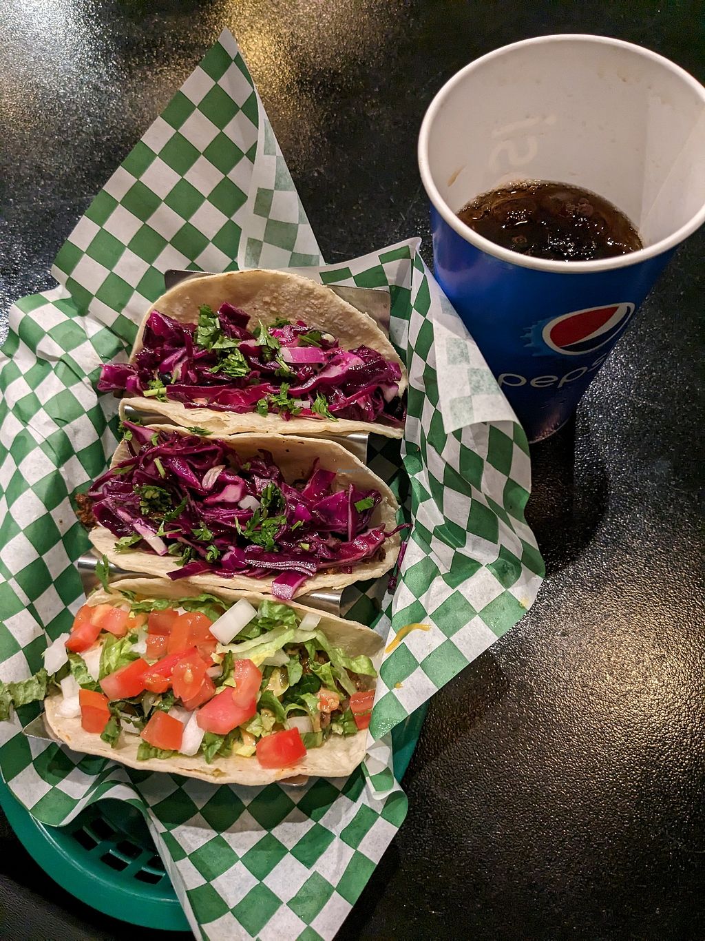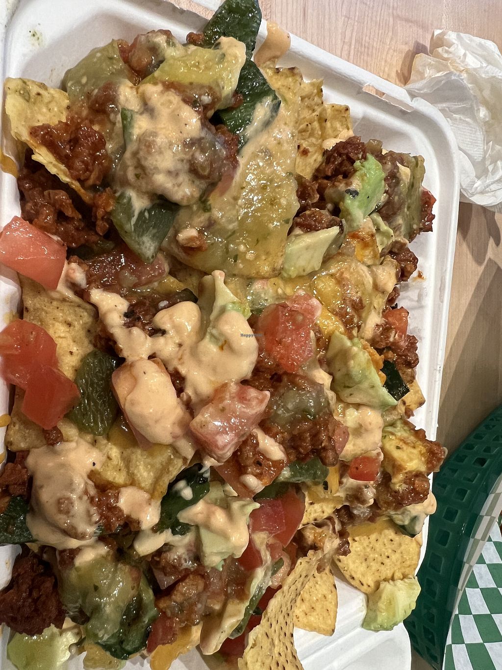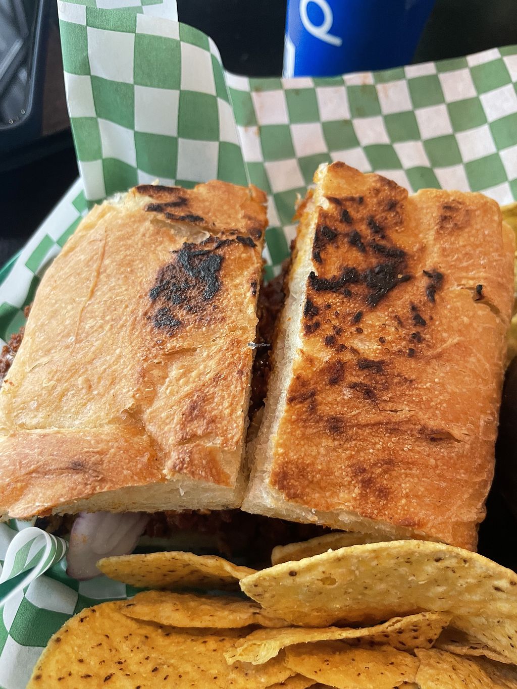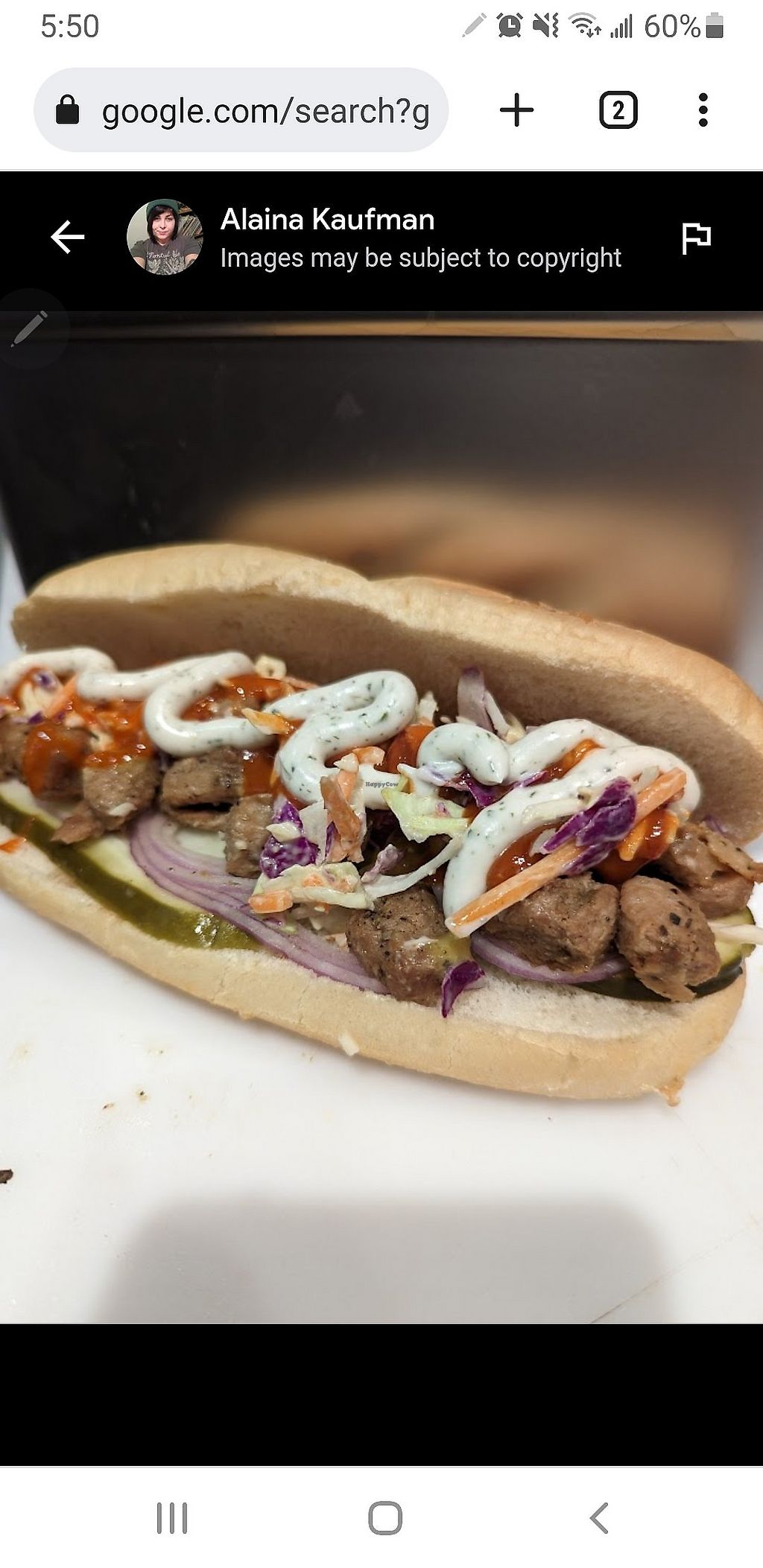 BUFFALO "CHICKEN": chopped chik’n, pickles, red onion, coleslaw, chedd…