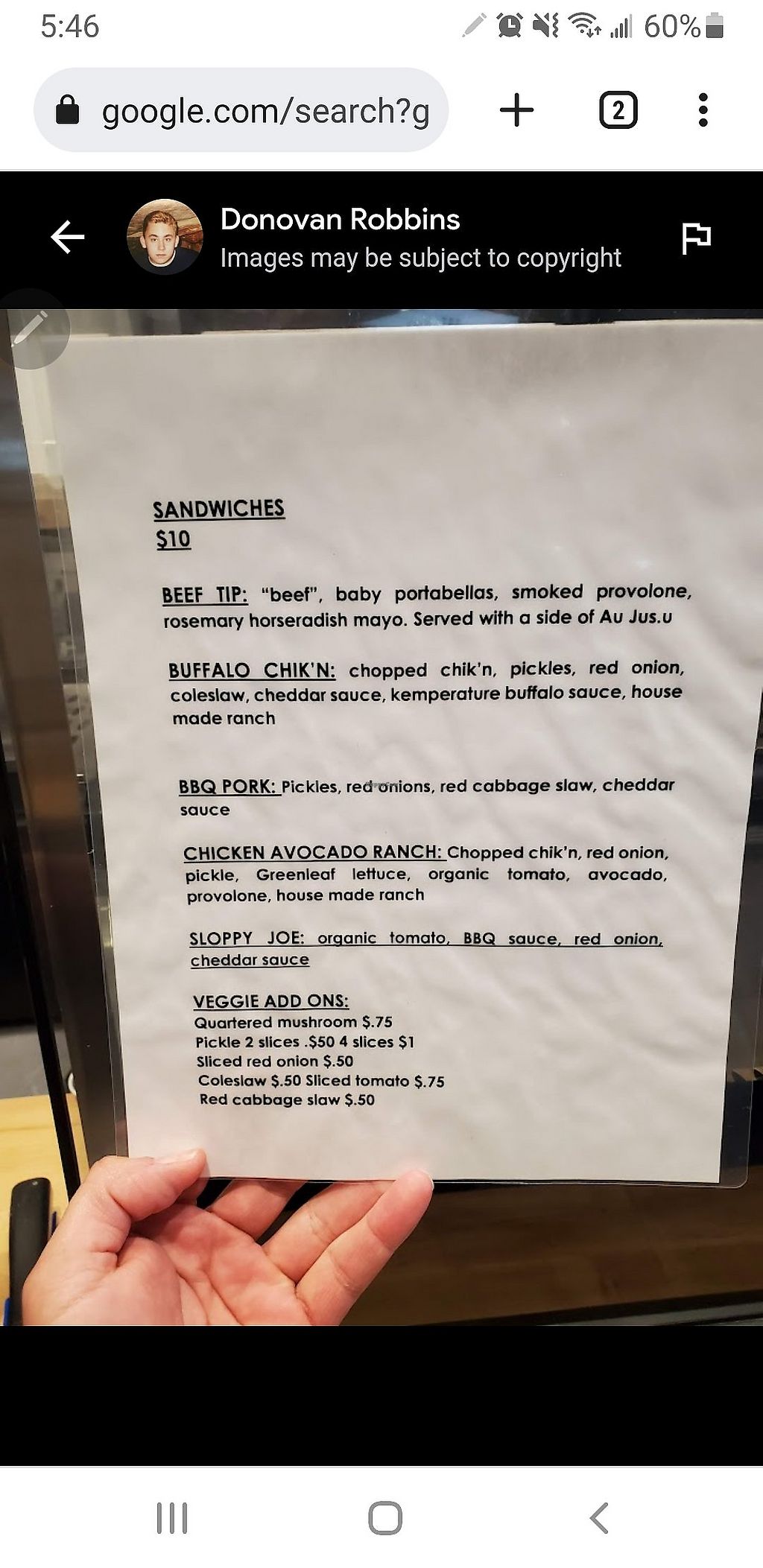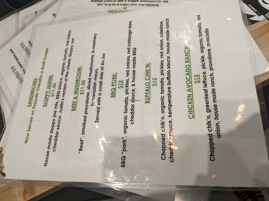 CHICKEN AVOCADO RANCH: Chopped chik’n, Green leaf lettuce, pickle, re…