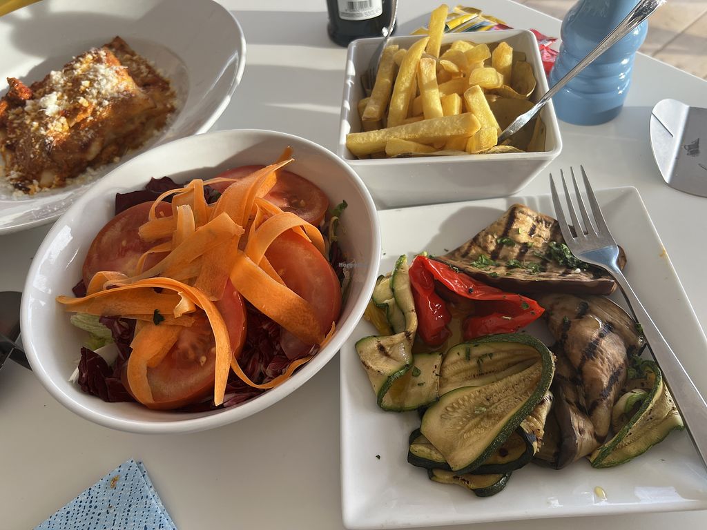 Our first meal in Alghero couldn't have a better setting seated on the terrace right on the beachfront. We had seen this on happy cow but there were no reviews so we were surprised that actually there are no vegan options on the menu. When we told the waitress that we were vegan she suggested spaghetti and seemed surprised when we asked if they could add vegetables, but agreed. Food was tasty but not amazing, and expensive especially for the simplicity of the dish.