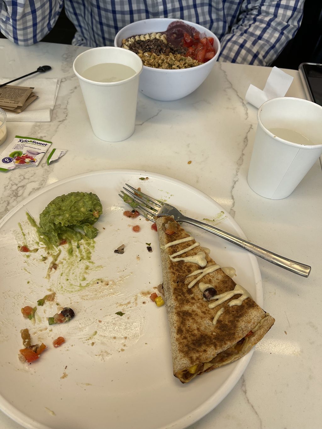 You order at the counter but that’s where the fast food experience ends. Food is prepared to order, the açai bowls are not over sweet or processed, the quesadilla was really delicious, as shown by my photograph which of course I forgot to get a photo when it was pretty and untouched.