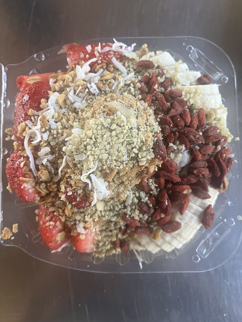 Acai bowl with the works made with organic acai, strawberries, banana,…