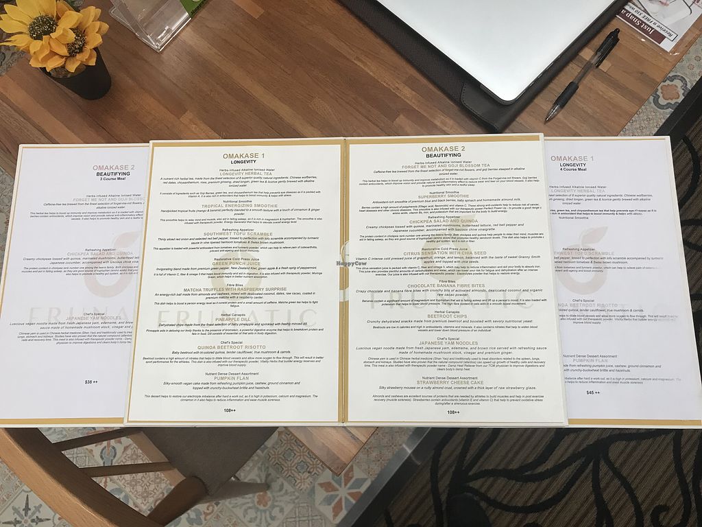 Amazing fine vegan restaurant. I've traveled the world with my HC app, I always find places to enjoy delicious vegetrian and vegan meals. Here after talking with the owner he explains that here is haute cuisine, they have two menus to choose which is changed every week, I leave the photo of this week. The place very beautiful. It is inside the B floor of the Palais Renaissance shopping center, on the very conical Orchad street. Right in front of Jamie's. I still can not talk about the food, because when I came it was not time to eat, but visit the place and talk to the owner and I can attest that he paints better than good, I just want to come to this city again and be able to taste a goumet meal Vegan, very unusual thing. This place is the brother of Wholesome Savor, same manager, same place. That the example cunda, eat, drink healthy and without animal suffering. Go Vegan!I ( 108SGD- 66€)