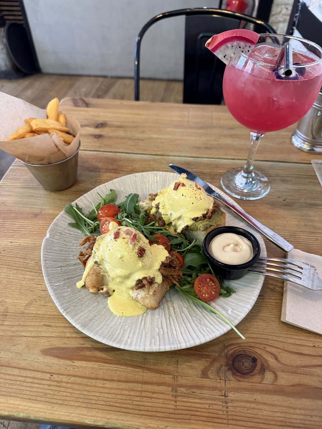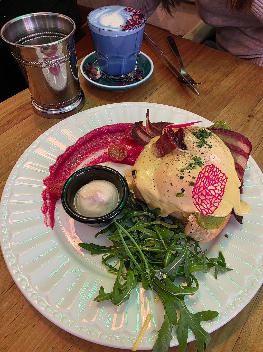 Read moreThe menu is so interesting, I had to try more than one meal. We had lemonade and a flat white (one of the best coffee drinks I had for the entirety of my vacation!!!), the baconator sandwhich (this bacon was tasty!!!), the sodom & gomorrah bowl, and two different benedicts (the “eggs” were WILD!!!!). All of it was the most delicious.