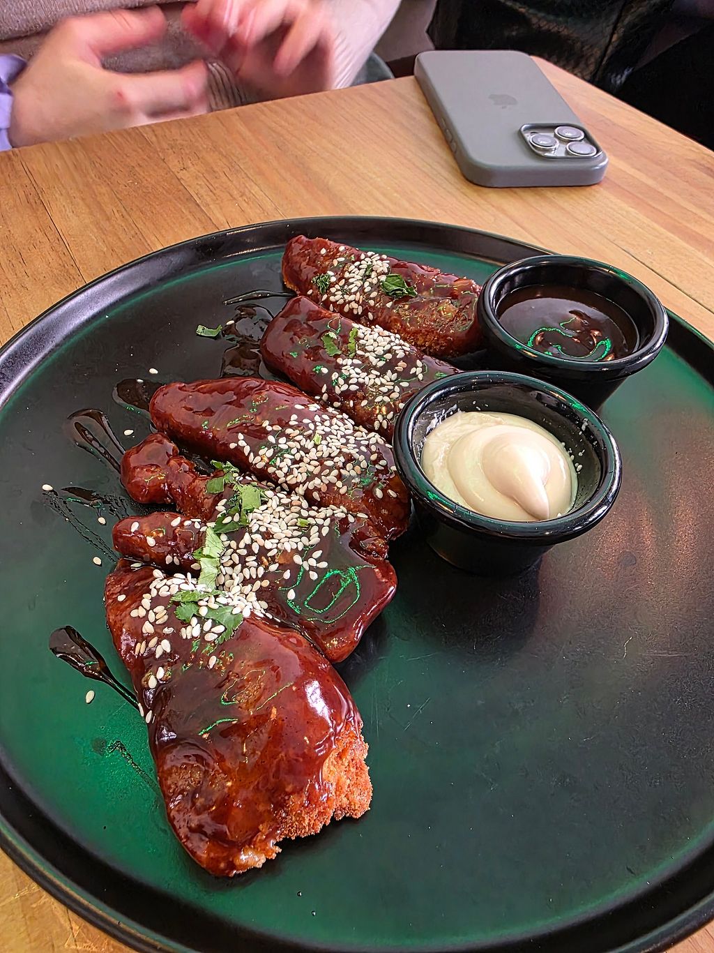 The vibe of the restaurant is super cute and welcoming! I got the BBQ wings which were 11 euros which felt a little pricy for me. They have some really great options that I will surly be trying in the future. I wasn’t the biggest fan of their green tea either.