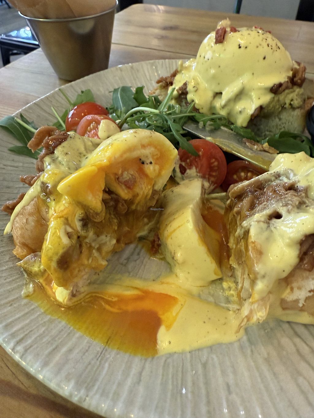 Read moreThe Eggs Benedict (no matter the style you choose) is a marvel of vegan ingenuity. I was stunned by the texture of the outside. I was stunned again when I cut through it to find the gooey yoke. I've never had anything like it in my life. Paired with the hollandaise sauce, truffle pearls, and parmesan cheese, It becomes the perfectly concocted dish.