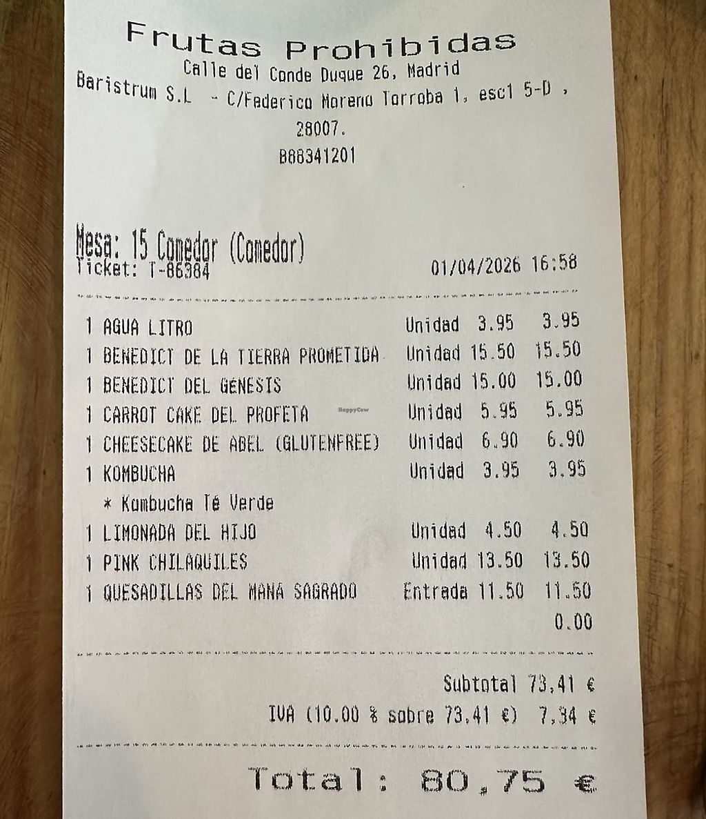 We really enjoyed our lunch at this all vegan madrid’s best vegan concept. You have to download the menu. The water is self serve at the counter. They had free wifi (business cards on tables) and the toilet was clean. It's dark in by the commode and there is a rather low beam so watch your head. We had the "Benedict of Genesis" which we thought was very tasty. We also had the "mortal sin" cookie.