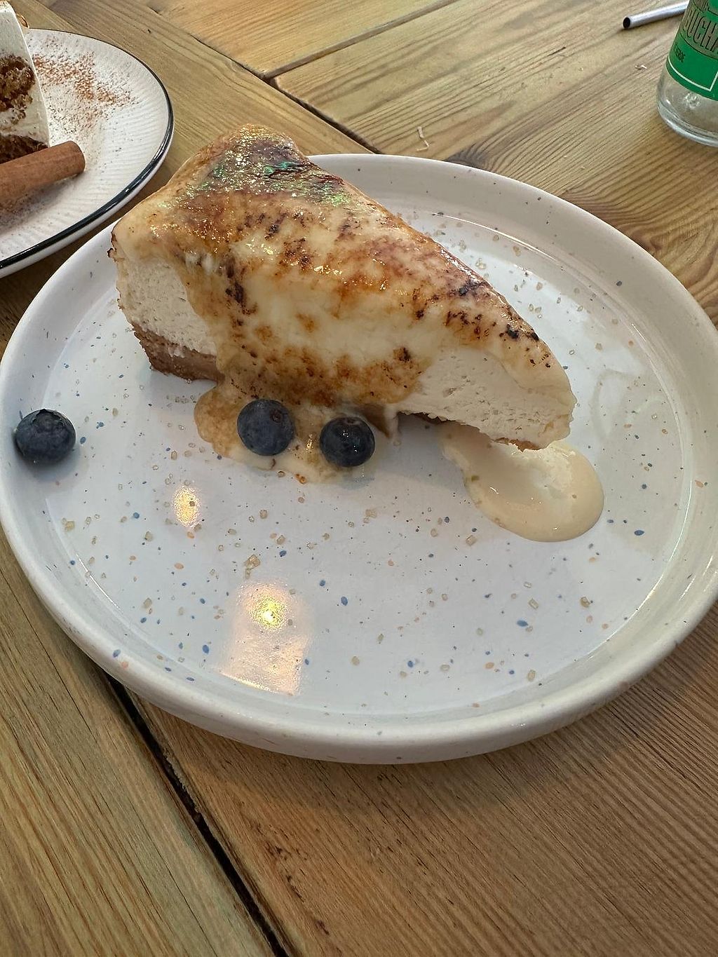 Pros: La tarta de queso con creme brulé, El pan brioche, La carta en general