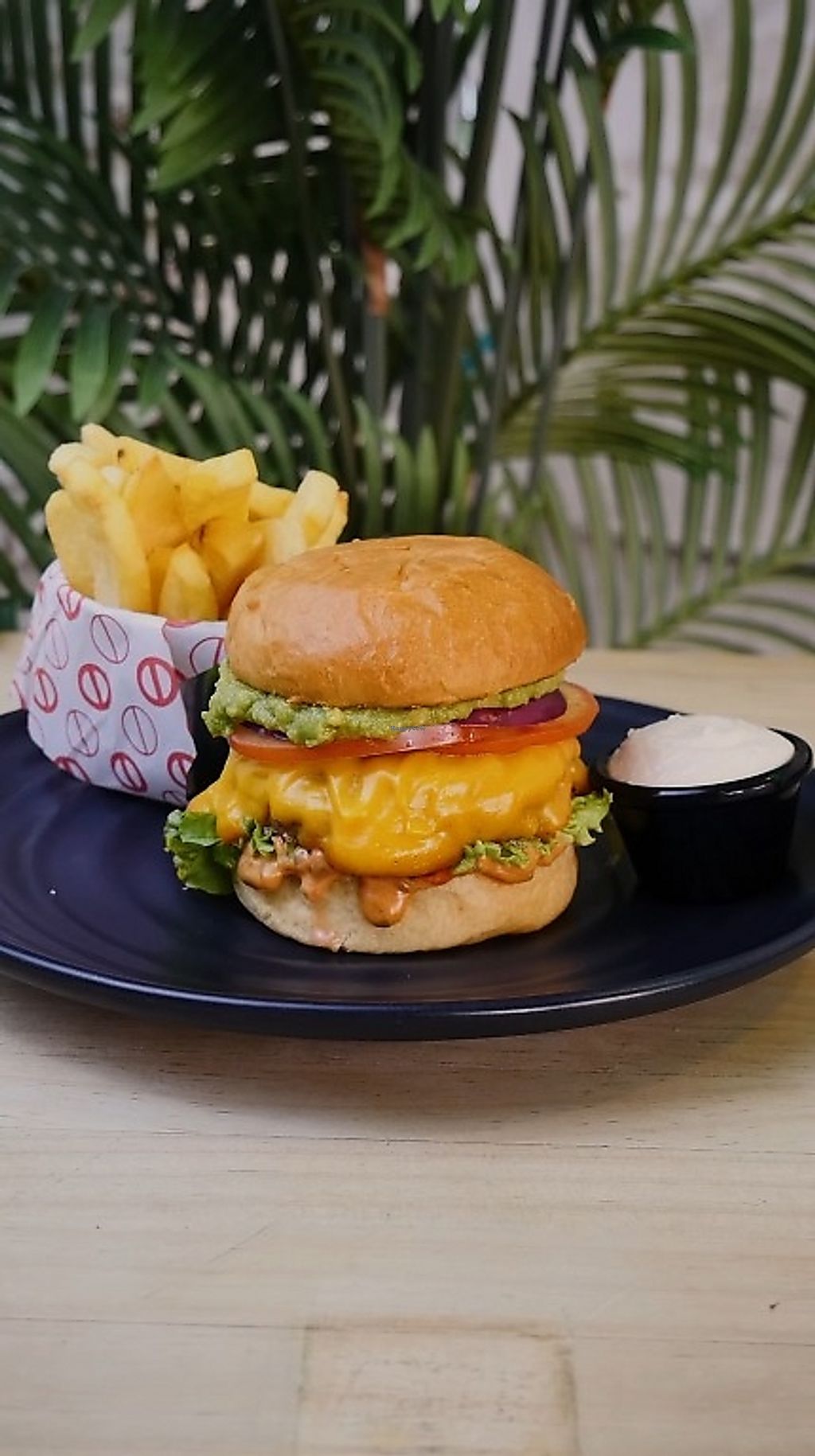 Double homemade plant-based beef-style meat with cheese, Vurger sauce …