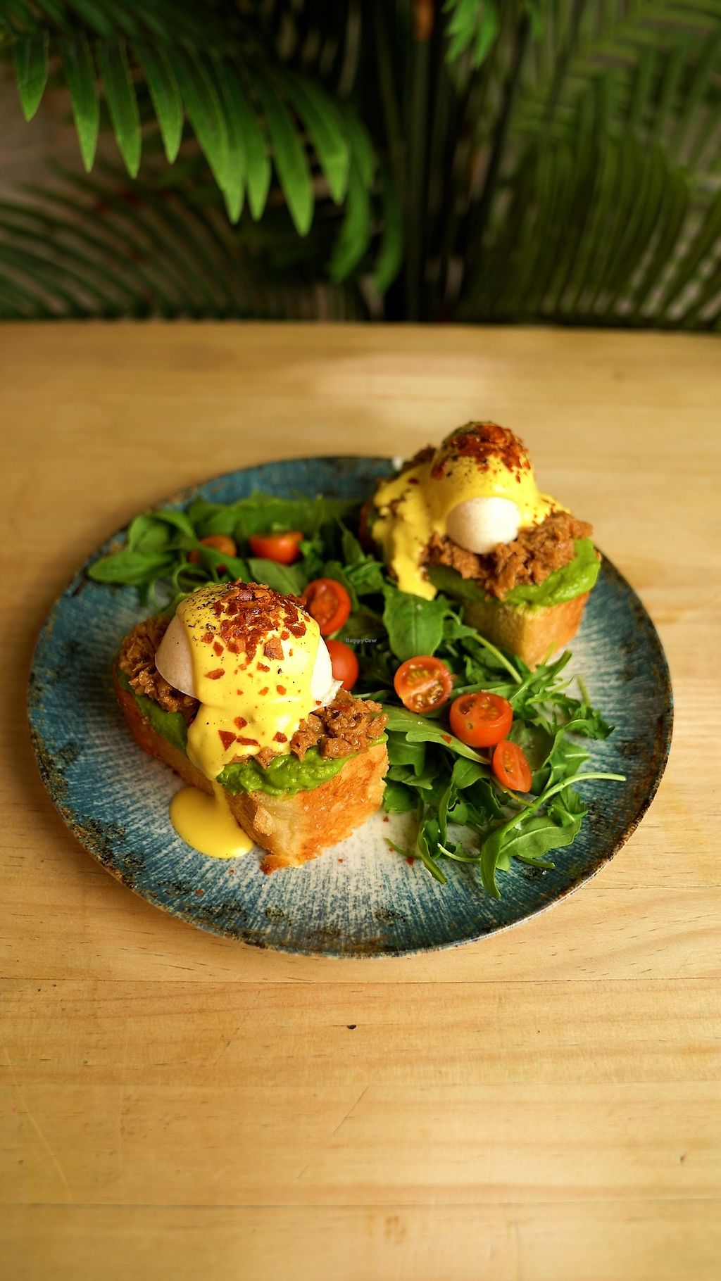 CLASSIC EGGS BENEDICT: Two WEVOs (vegan eggs) on sourdough brioche, av…