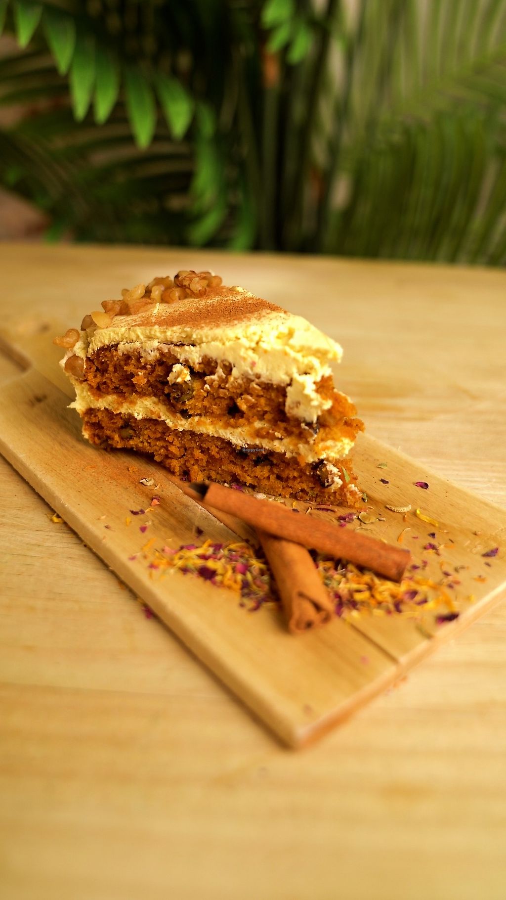CARROT CAKE: Juicy carrot cake with vegan cream cheese with 8 spices
