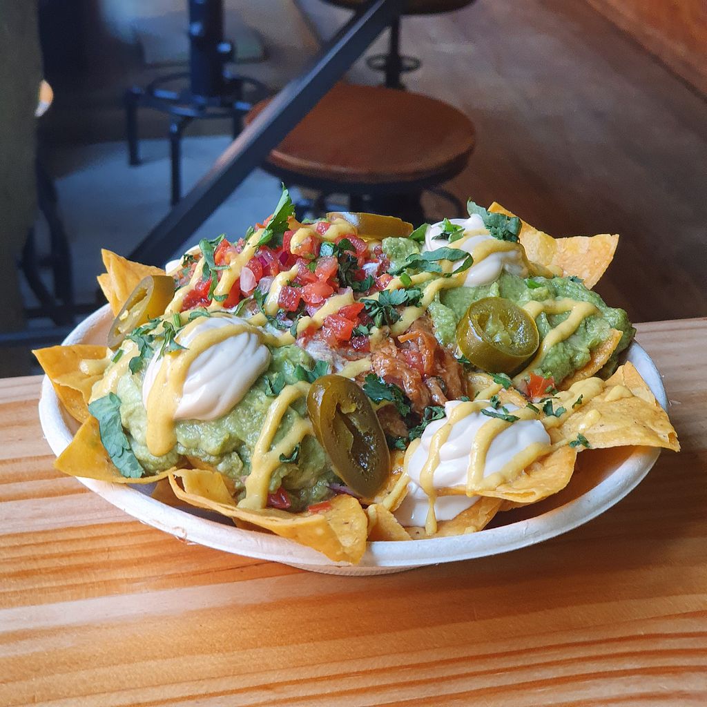 NACHOS DEFINITIVOS: Homemade tortilla chips with refried beans, pulled…
