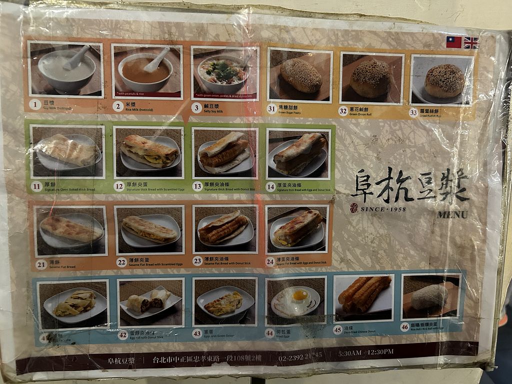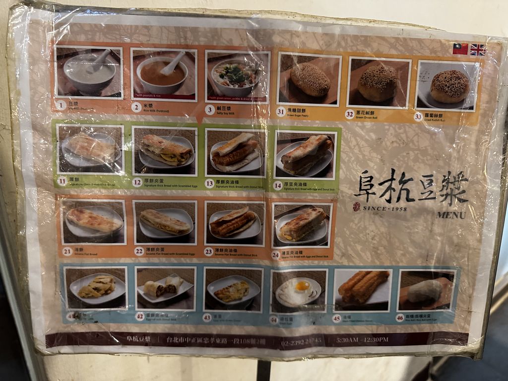 The Taiwanese breakfast was excellent. Their salty soy milk really is special and is better than other places I've had in Taiwan. The bread here is great too but you really need to order the soy milk to say you've gotten the full Fuhang experience.