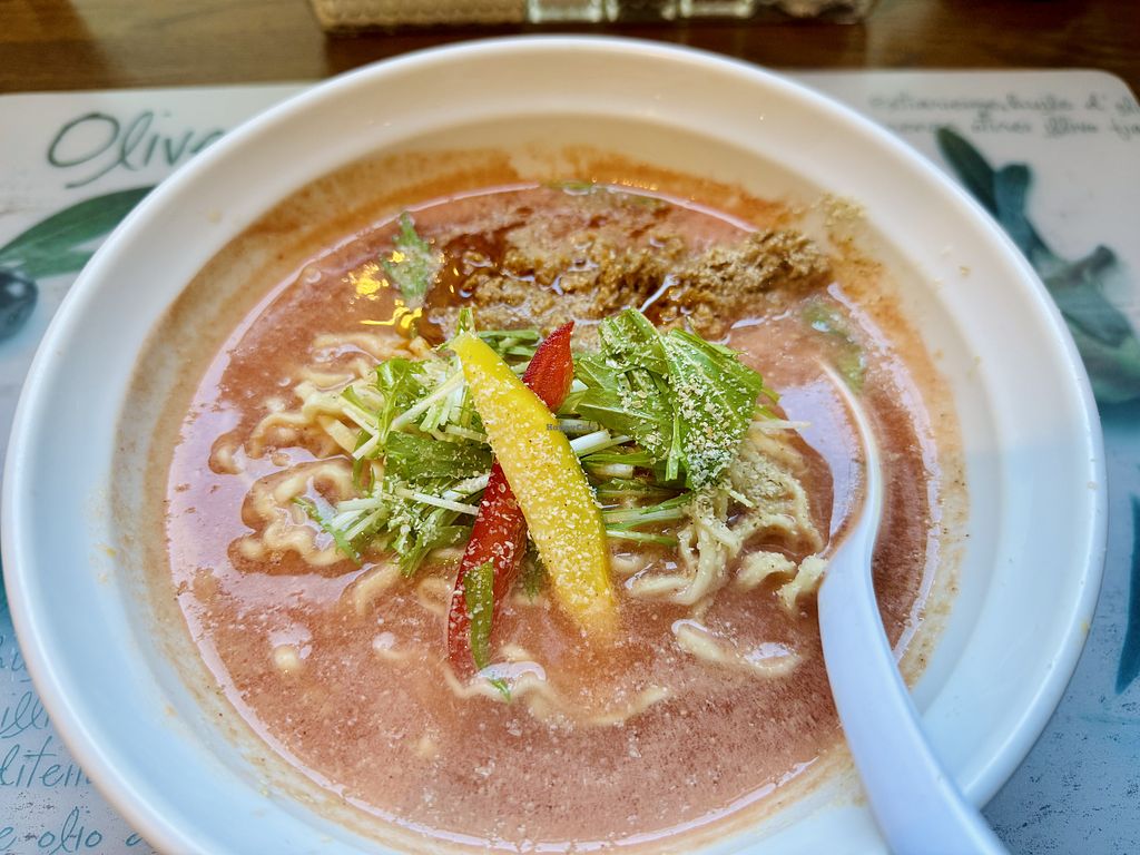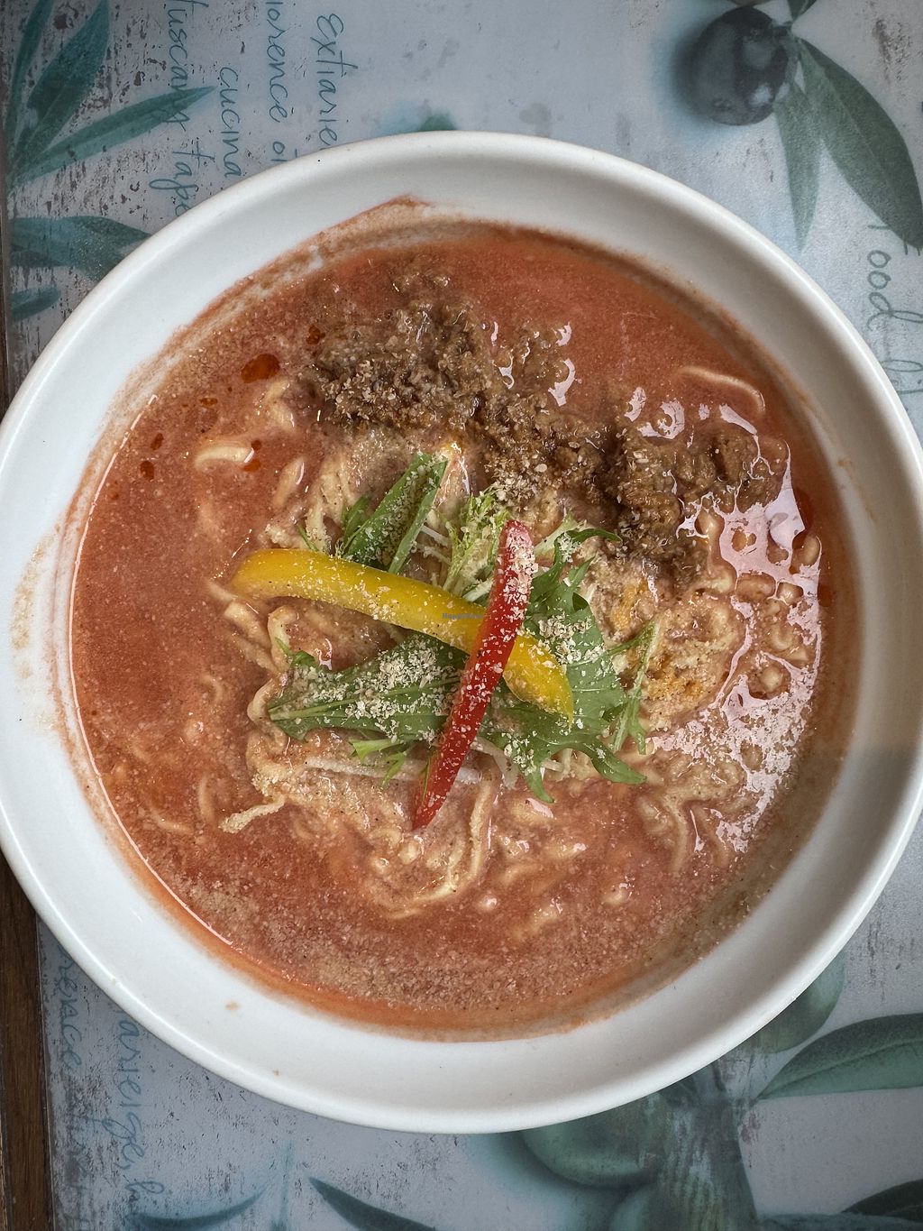 非常好吃的番茄拉麵!一大碗,濃濃稠稠的,滿滿番茄🍅存在感,真材實料。店內還有番茄拉麵的方便面可購買!老闆娘很熱情。