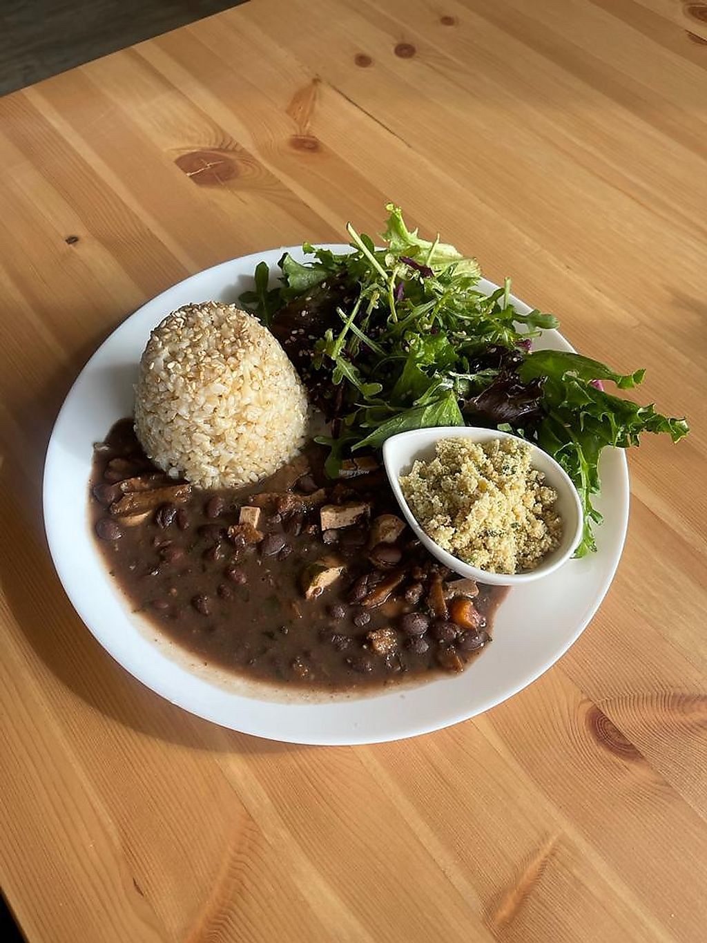 The food was spectacular, we had the soup of the day and then the dish of the day which was a carrot soup and a Brazilian dish called Feijoada and then a chocolate pie for dessert. They replaced the meat in the main with a substitute and it worked so well in the sauce. Was so refreshing after having a great deal of chips, salad and fruit! The staff were so lovely and attentive- definitely coming back to albufeira so we can come here again.