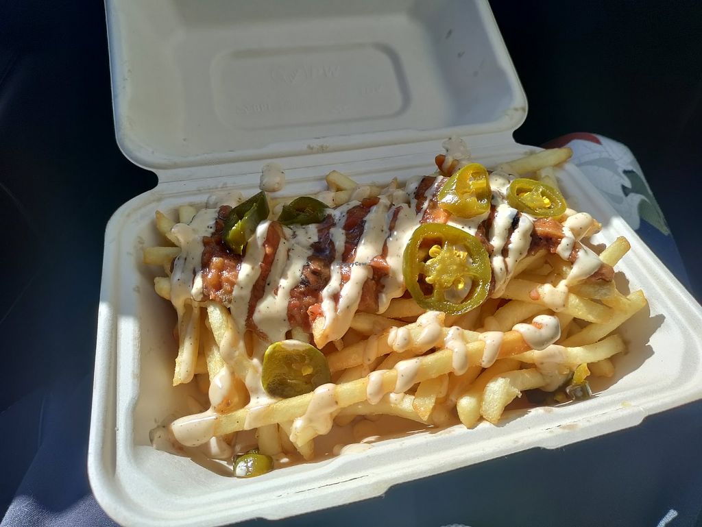 Fully vegan food vendor serving mushroom-focused comfort food at Grand Lake Farmer's Market. Sells crab cakes, fried mushroom chicken sandwiches, Philly cheesesteaks, loaded fries, and more. Open Sat 9:00am-2:00pm.