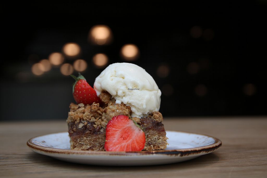 Crumble Date Cake with vanilla ice cream