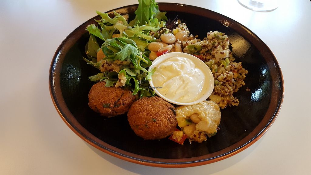 I wanted to love this place. It is 100% vegan and I had read lots of positive reviews but I was disappointed, it just didn't live up to expectations. I was keen to try the sharing dish which sounded delicious but when we went to order we were told that was off the menu. They had also sold out of the burgers so there was actually no hot food on offer. We found the service was a bit so-so and we weren’t advised that the menu was limited until we went to the counter to order. In the end I went for a falafel bowl which was ok but not particularly inspired