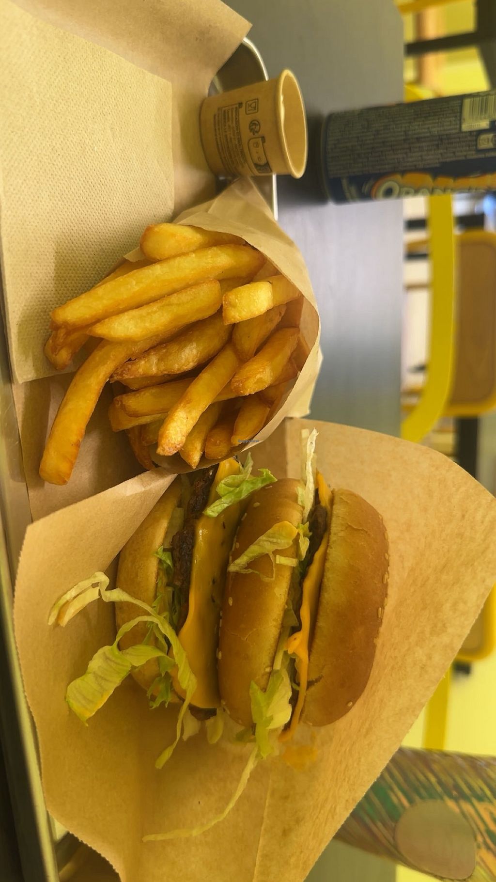 Furahaa burger with sweet potato fries and passion fruit lemonade