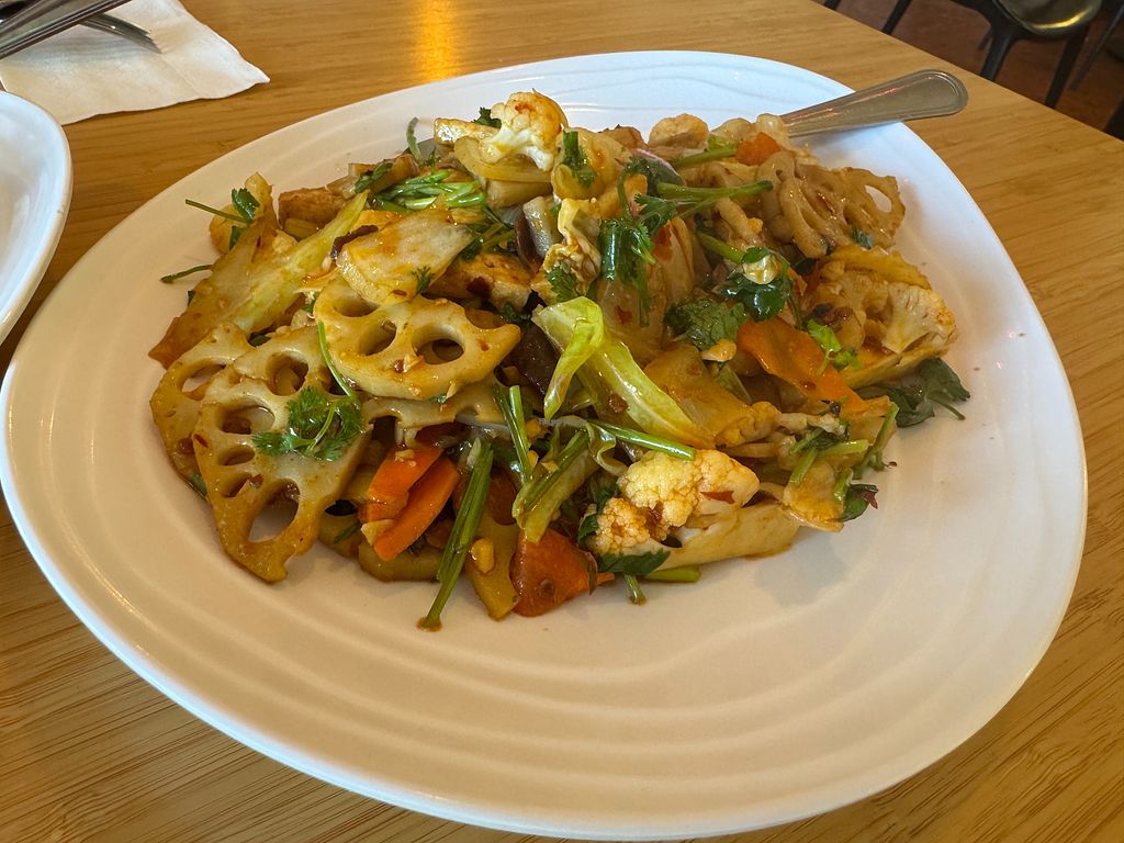 The numbing noodles had great flavor. I love drinking water afterwards and feeling like my tongue can taste the spice. Sub out for their wider noodles for extra taste, but the thinner rice noodles work just as well. If I were only getting the noodles, I would add tofu to give some protein. The lotus root dish itself was also great and would've really gone well with rice.