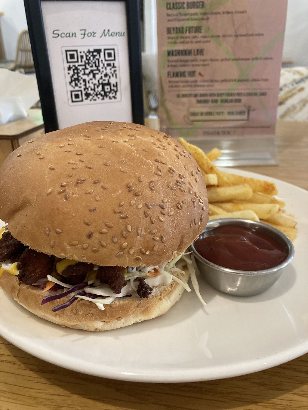 Cool place away from the loud streets. Diverse menu, delicious burgers and even better smoothies! Will definitely go back, highly recommend.
