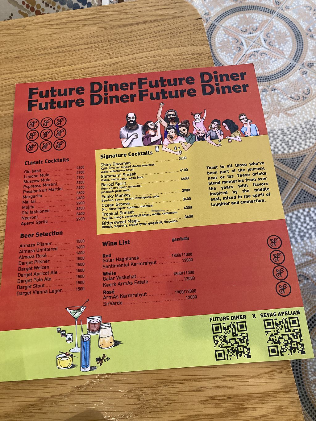 SO many options, difficult to choose! Food is super tasty and the location is great. The owner (?) is so lovely and friendly. Please go if you’re in Yerevan.