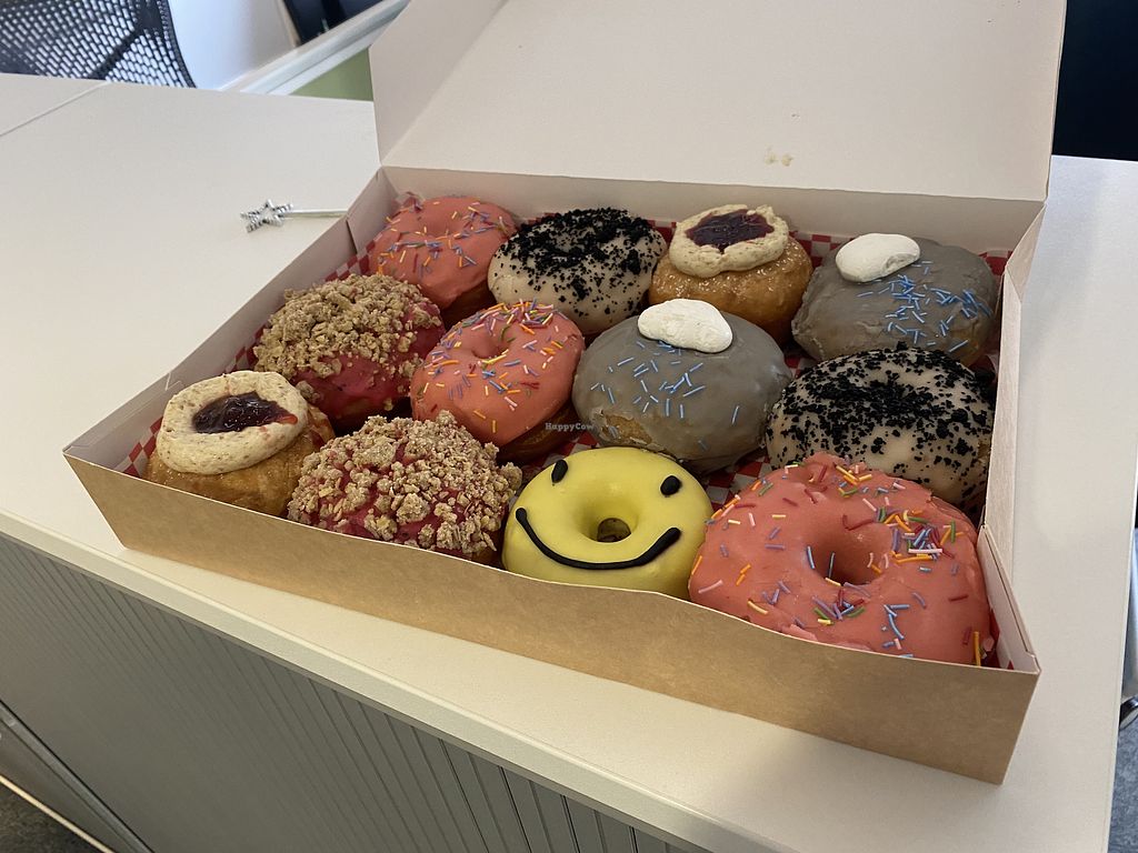 This place is around the corner from my work so it really makes in the office days a hell of a lot better! All vegan, doughnuts are delicious and different every time!